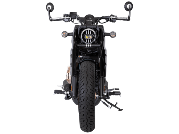 Мотоцикл CYCLONE RA600 Bobber – одноместный круизёр, готовый рассекать по городу и скоростным трассам. Лёгкая в управлении и надёжная модель с 550-кубовым двигателем, имеющая комфортный расход топлива для ежедневных поездок, хороший запас хода и оптимальную длину передач для маневрирования в потоке.Мотоцикл оснащён 2-цилиндровым 4-тактным двигателем ZS550SR жидкостного охлаждения с 4 клапанами на каждом цилиндре и 2 распредвалами. Двигатель имеет объём 550 см³ и способен обеспечить мощность в 59 л.с. при 8500 об/мин. Максимальный крутящий момент в 55 Нм достигается при 6500 об/мин. Подачу топлива обеспечивает инжектор BOSCH. Механическая коробка передач имеет 6 ступеней и схему 1-N-2-3-4-5-6.Максимальная скорость 165 км/ч.Объём топливного бака 14,5 литра.Колёса с легосплавными дисками имеют диаметр 16 дюймов. В качестве подвески используются телескопическая вилка и регулируемый маятник с моноамортизатором. Мотоцикл оснащён датчиками давления в шинах, показатели от которых выводятся на приборную панель. Клиренс в 150 мм позволяет комфортно проходить препятствия на дороге.Тормозная система произведена компанией J.JUAN, входящей в холдинг BREMBO. На оба колеса установлены гидравлические дисковые тормоза. Спереди установлен 2-поршневой суппорт, сзади используется однопоршневой суппорт с плавающей скобой. Дополнительную безопасность обеспечивают системы ABS и TCS. Они повышают устойчивость при экстренном торможении и на сложных поверхностях.Габариты модели 2190х855х1115 мм, снаряженная масса 198 кг. Высота по седлу 725 мм, колёсная база 1510 мм. Мотоцикл оснащён USB-портом для зарядки устройств