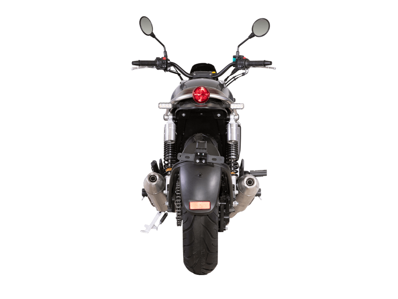 CYCLONE RE3 (SR400) – классик, в котором подчёркнутая простота объединяется с современными технологиями.Двухцилиндровый четырёхтактный двигатель объёмом 401 см3 выдаёт 43 л.с. на 9500 об/мин. Максимальный крутящий момент достигается на 8000 об/мин и составляет 34 Н·м. Инжекторный впрыск топлива с инжектором BOSCH увеличивает топливную экономичность, а также позволяет добиться высокой приёмистости и неприхотливости агрегата. Жидкостная система охлаждения не допустит перегрева двигателя даже при самом агрессивном вождении. На мотоцикл установлена 6-ступенчатая механическая коробка передач.Максимальная скорость мотоцикла составляет 140 км/ч.RE3 оснащён классическими спицованными колёсами диаметром 17 дюймов. Колёса обуты в бескамерные покрышки TIMSUN. С неровностями дороги эффективно справляются регулируемая телескопическая вилка перевёрнутого типа спереди и маятник с двумя амортизаторами сзади. Ход передней подвески составляет 110 мм, задней – 81 мм. Эффективное и безопасное замедление с любых скоростей обеспечивают гидравлические дисковые тормоза с ABS спереди и сзади.Клиренс мотоцикла составляет 145 мм. Объём топливного бака – 19 л. Снаряжённая масса – 186 кг.Из дополнительного оборудования можно выделить USB-порт, подсветку пультов и датчики давления в шинах.Мотоцикл сочетает в себе отличные технические характеристики, комфорт и надёжность, что позволяет вам ощутить настоящую свободу на любой дороге.