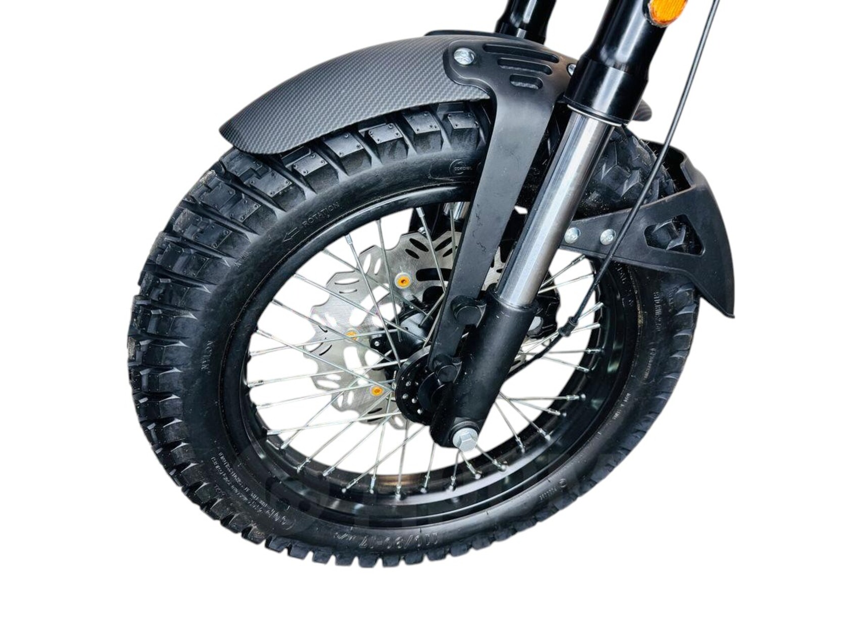 Racer RC300-GY8H Triumph 300 — это компактный и легкий мотоцикл с продуманными техническими характеристиками, ориентированный на городскую и пригородную эксплуатацию. Его габариты составляют 1980х835х1350 мм, что делает его маневренным на дороге, а колесная база 1330 мм обеспечивает устойчивость при движении. Вес мотоцикла — 110 кг, что позволяет легко управлять им, даже неопытным водителям.Сердцем модели является 4-тактный двигатель объемом 297 см³ с балансировочным валом, который выдает мощность 25 л.с. при 8500 об/мин. Двигатель охлаждается воздушной системой, что делает его простым в обслуживании и надежным в эксплуатации. За подачу топлива отвечает карбюратор PZ32. Мотоцикл оснащен пятиступенчатой коробкой передач с классической схемой переключения (1-N-2-3-4-5), а запуск возможен как с электростартера, так и с кик-стартера.Топливный бак объемом 14 литров обеспечивает запас хода на длительные поездки, при этом расход топлива составляет всего 2,8 л на 100 км, что делает его экономичным вариантом. Модель способна развивать скорость более 100 км/ч, а максимальная нагрузка — 130 кг — позволяет комфортно перевозить водителя и пассажира.За комфортное передвижение отвечают спицованные колеса с алюминиевыми ободами и шинами Cordial, которые обеспечивают отличное сцепление с дорогой. Размер переднего колеса — 110/90-17, заднего — 130/80-17. Тормозная система представлена двухпоршневыми дисковыми тормозами как на переднем, так и на заднем колесе, что гарантирует уверенное и безопасное торможение.Подвеска мотоцикла представлена телескопической вилкой спереди и регулируемым моноамортизатором сзади, что обеспечивает плавный ход и комфорт на различных типах дорожных покрытий. Приборная панель оснащена современной электронной системой, позволяющей легко считывать все необходимые данные.