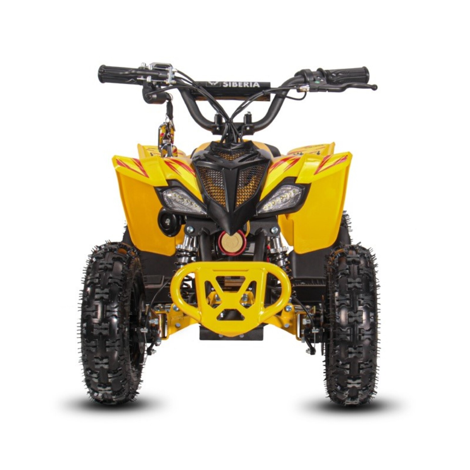 Детский электрический квадроцикл SNEG LETO R YELLOW 1000WЭлектроквадроцикл SNEG LETO R 1000WДанная модель из нашего каталога рассчитана на детей от 3 до 8 лет. Он комфортен, удобен и прост в управлении, благодаря обилию регулировок. Создан для обучения детей управлению мото-техникой в Российских условиях.Что же отличает SNEG LETO R 1000W от конкурентов?• Масляные амортизаторы, которые можно настроить в соответствии со своим стилем езды;• Батарея 36V в жестком чехле;• Есть родительский контроль (пульт вкл/выкл радиус действия до 70м (в зависимости от местности));• Дисковые тормоза;• LED оптика;• Классический внешний вид;• Ножной тормоз;• Бесступенчатый ограничитель скорости (1 скорость 5-7 км/ч ; 2 скорость 12-15 км/ч ; 3 скорость 23-25 км/ч)• Шины: пневматические, резиновые, бескамерные (Перед: 4.10-6 Зад: 10х5.00-6)• Рама стальная, трубчатая - окрашена порошковой краской.Детский электрический квадроцикл SNEG LETO R YELLOW 1000W – лёгкий и послушный аппарат для детей. Сбалансированные характеристики, простота управления, наличие большого количества настроек – позволяют настроить под любого райдера. А главные преимущества – лёгкость обслуживания и возможность прогулок в парках, куда нельзя попасть на бензиновой технике.