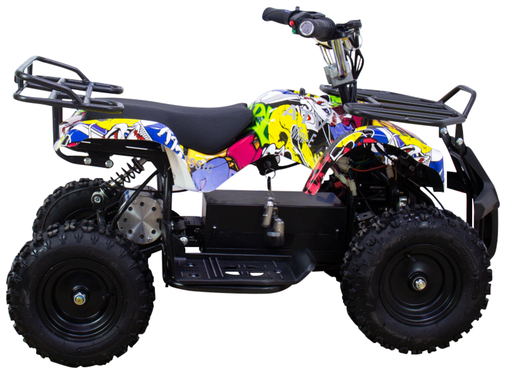 Е-квадроцикл обладает надежным и мощным электромотором. В отличие от своих бензиновых аналогов он имеет задний ход, что делает процесс езды более увлекательным.