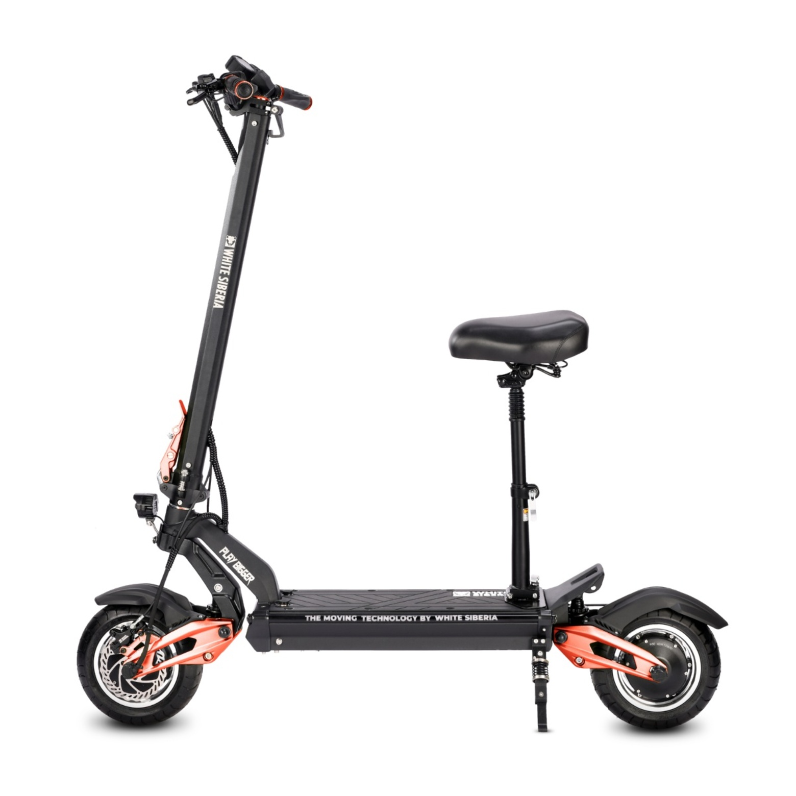 Электросамокат WHITE SIBERIA NERPA PRO 3600WПолноприводный электрический самокат NERPA PRO 3600W – это идеальный выбор для взрослых, которые ценят скорость и комфорт. Этот самокат прекрасно подходит как для передвижения по городу, так и для поездок в пригород.Преимущества электросамоката WHITE SIBERIA NERPA PRO 3600W:Усиленный трехэлементный мотор: Разгоняется до впечатляющих 70 км/ч, обеспечивая быстрое передвижение.Высокая грузоподъемность: Выдерживает до 140 кг, что позволяет использовать его даже двоим взрослым средней комплекции*.Регулируемые амортизаторы: Мощные масленые амортизаторы обеспечивают комфортную езду по любым дорогам.Отличное сцепление с дорогой: Оснащен дорожной резиной, что гарантирует надежное сцепление даже в мокрую погоду.Пневматические колеса: 11-дюймовые колеса позволяют легко преодолевать любые препятствия.Два режима езды: Режим ECO для плавной и экономной езды и режим TURBO для любителей скорости и драйва.Длительный запас хода: Аккумулятор 60V24A обеспечивает запас хода до 75 км, что позволяет ездить по городу без ежедневной подзарядки.Безопасная батарея: Оснащена балансиром для равномерного заряда.Яркая LED фара: Обеспечивает отличную видимость в темное время суток с четкой теневой границей.Отключаемый полный привод: Возможность отключения полного привода с помощью кнопки SINGLE DUAL.Гидравлические тормоза: Дисковые гидравлические тормоза в сочетании с рекуперативным тормозом обеспечивают максимальную безопасность.RGB подсветка: Возможность выбора цвета подсветки для создания уникального стиля.NFC карта: Для удобного включения и выключения самоката.Прочный и легкий корпус: Изготовлен из алюминия, что делает его долговечным и удобным для транспортировки.Электросамокат NERPA PRO 3600W сочетает в себе стильный дизайн, высокую скорость, маневренность и комфорт. Он станет вашим надежным спутником как в городской суете, так и за его пределами.