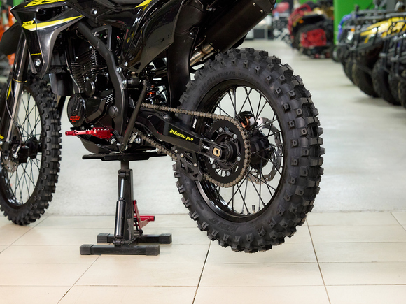 BSE Z9 – полноразмерный спортивный эндуро мотоцикл на стальной раме. Оснащен новым мотором ZS175 300 кубов с воздушным охлаждением. Лёгкий и маневренный. Выполнен полностью в черном цвете.