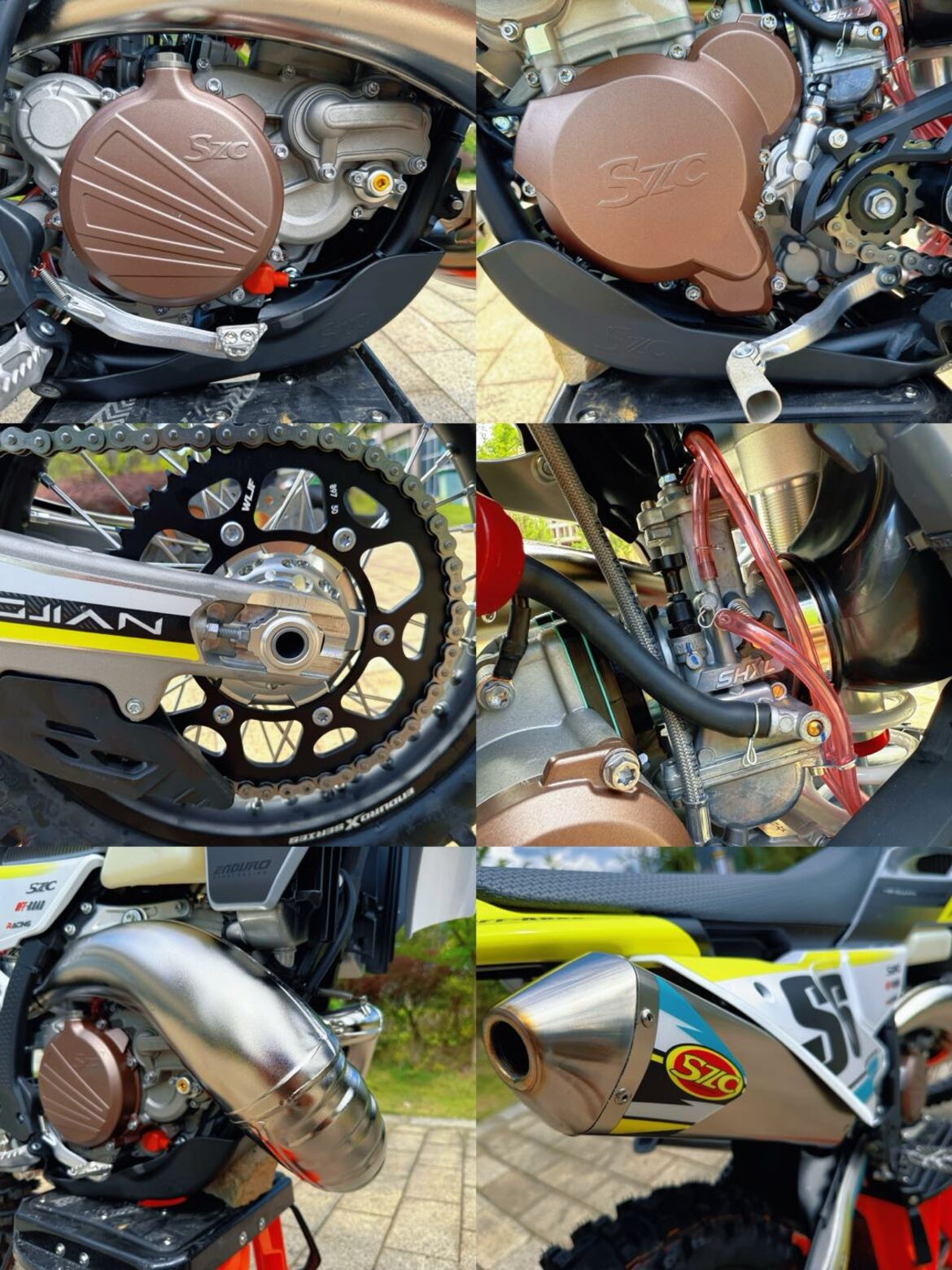 Hengjian S6 Z300 — это 2-тактный эндуро-мотоцикл 2025 года выпуска, позиционируемый как аналог моделей Husqvarna TE300 и KTM EXC300. Он сочетает доступную цену с техническими характеристиками, близкими к топовым европейским аналогам.Высокая мощность. Мощность двигателя — 57 л. с., максимальная мощность — 42,6 кВт.Максимальная скорость — 150 км/ч.Водяное охлаждение.Гидравлическое сцепление для идеального контроля.Увеличенный бензобак для долгих поездок — 9 л.Регулируемая передняя подвеска (сжатие/отбой/преднатяг пружины).Регулируемый моноамортизатор (сжатие/отбой).Копия двигателя Husqvarna TE300 с прогрессией.Передняя подвеска — SZC открытый картридж, версия PRO. Длина — 940 мм, диаметр пера — 48 мм. Есть регулировки сжатия и отбоя.Задняя подвеска — амортизатор SZC OPTIMA, регулируемый (сжатие/отбой). Длина — 480 мм.Передняя подвеска — телескопическая, перевёрнутого типа.Задняя подвеска — моноамортизатор регулируемый SZC XP, PDS (сжатие/отбой).