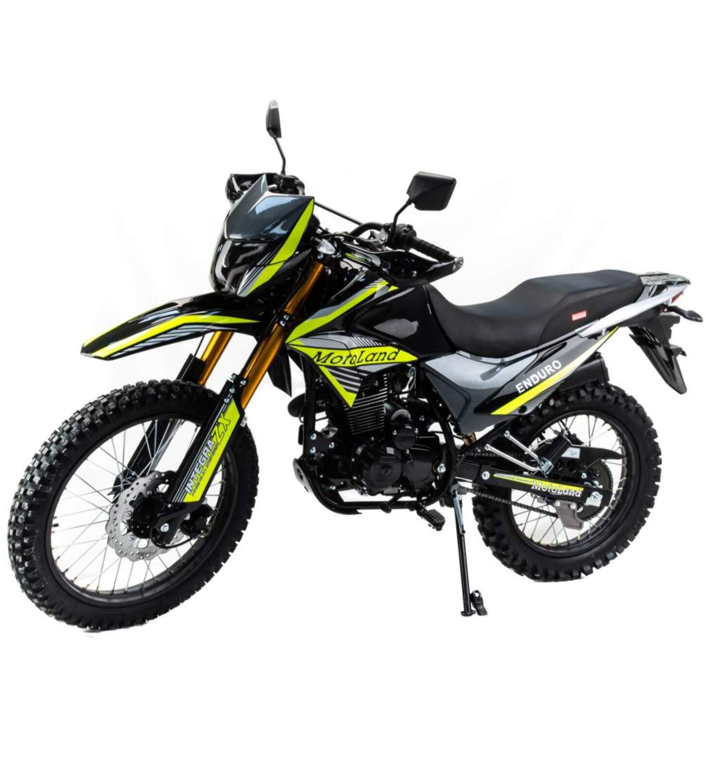 Мотоцикл Motoland ENDURO ST 250 (165FMM) NEON (2023г.) - позиционируется как самый недорогой полноразмерный мотоцикл двойного назначения – для асфальта и легкого бездорожья. Наличие ПТС дает возможность легально передвигаться по городским улицам и дорогам общего пользования, внедорожные качества позволяет без особых усилий преодолевать бездорожье.Мотоцикл маневренный и потрясающе удобный в городе, из за своей узкой и высокой формы, способный пролезть даже в минимальные зазоры между стоящими в пробке автомобилями.Максимальную скорость – 120 км/ч которой для города и неспешных прогулок за его пределы вполне достаточно.Мягко сидение для 2-х пассажиров и подножки пассажира для удобных совместных поездок.Тихий городской глушитель, который не доставит вам дискомфорта.Оборудован обновленной светодиодной линзованной фарой, светодиодными поворотниками и стоп сигналом, блокировкой замка зажигания.Скромный расход топлива, который почти не зависит от того, с какой скоростью едет мотоцикл и на каких оборотах работает двигатель, в среднем это 3,2-3,5 л на 100 км.При этом он прост в управлении и неприхотлив в обслуживании и подходит мотолюбителям любого возраста,и опыта вождения которым нужна техника для поездок из точки А в точку Б и обратно по дорогам и легкому бездорожью