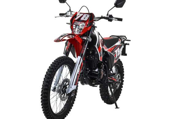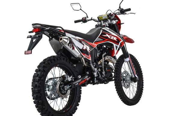 Современный дизайн мотоцикла подчёркивает спортивный характер байка.Установлен мощный 4х клапанный двигатель с воздушным охлаждением ZONGSHEN 172FMM-4VБольшой ход подвесок для комфортного передвижения по пересеченной местности, которые также позволяют ехать быстро и агрессивноВысокий вынос руля которые позволяет комфортно ездить в стойке и полностью контролировать мотоциклМотоцикл больше предназначен для езды по переченной местности полям и лесам, чем для города из за профиля резины.Он маневренный и удобный,сидение с противоскользящим чехлом.При этом он прост в управлении и неприхотлив в обслуживании и подходит мотолюбителям любого возраста,и опыта вождения.Технические характеристикиАнтибуксаторы на переднем и заднем колесе для езды на пониженном давлении или защиты от прокручивания камерыПередняя вилка перевернутого типа GPX без регулировок. Задний амортизатор с регулировкой.Карбюратор NIBBI PE n30Обновленная тормозная система. Передний и задний суппорт 2х поршневой.Герметичная проводкаВысота по седлу 940мм.Вес 125 кг.