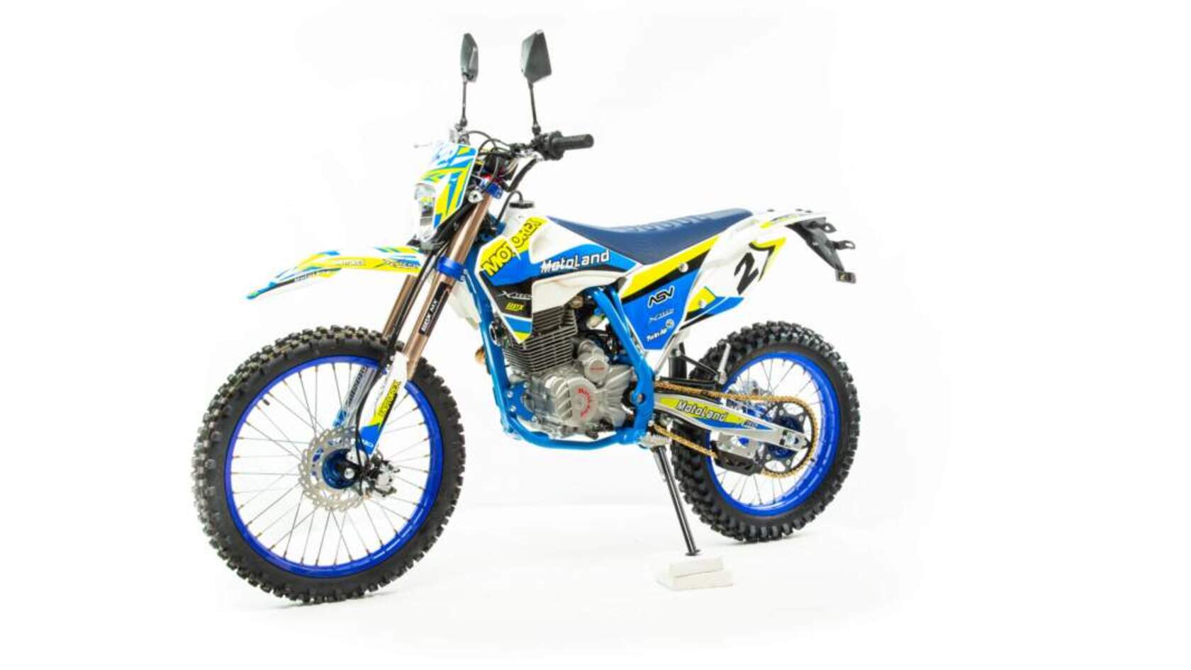 Мотоцикл MOTOLAND XT250 HS (колеса 21" / 18") - обновленная версия 2021 модельного года. Яркий и агрессивный дизайн, так хорошо всем знакомый по мотоциклам HUSQVARNA. Передняя вилка перевернутого типа с клапанами сброса воздуха. Задний амортизатор с регулировкой. Фирменная резина MotoLand со «злым» протектором.«Холодильник» приемной трубы глушителя с защитой от ожогов.Седло с противоскользящим покрытием.Руль Fatbar 28”.У нас Вы можете купить этот мотоцикл с бесплатной доставкой по РФ и гарантией до года. Также его можно приобрести в рассрочку или в кредит.