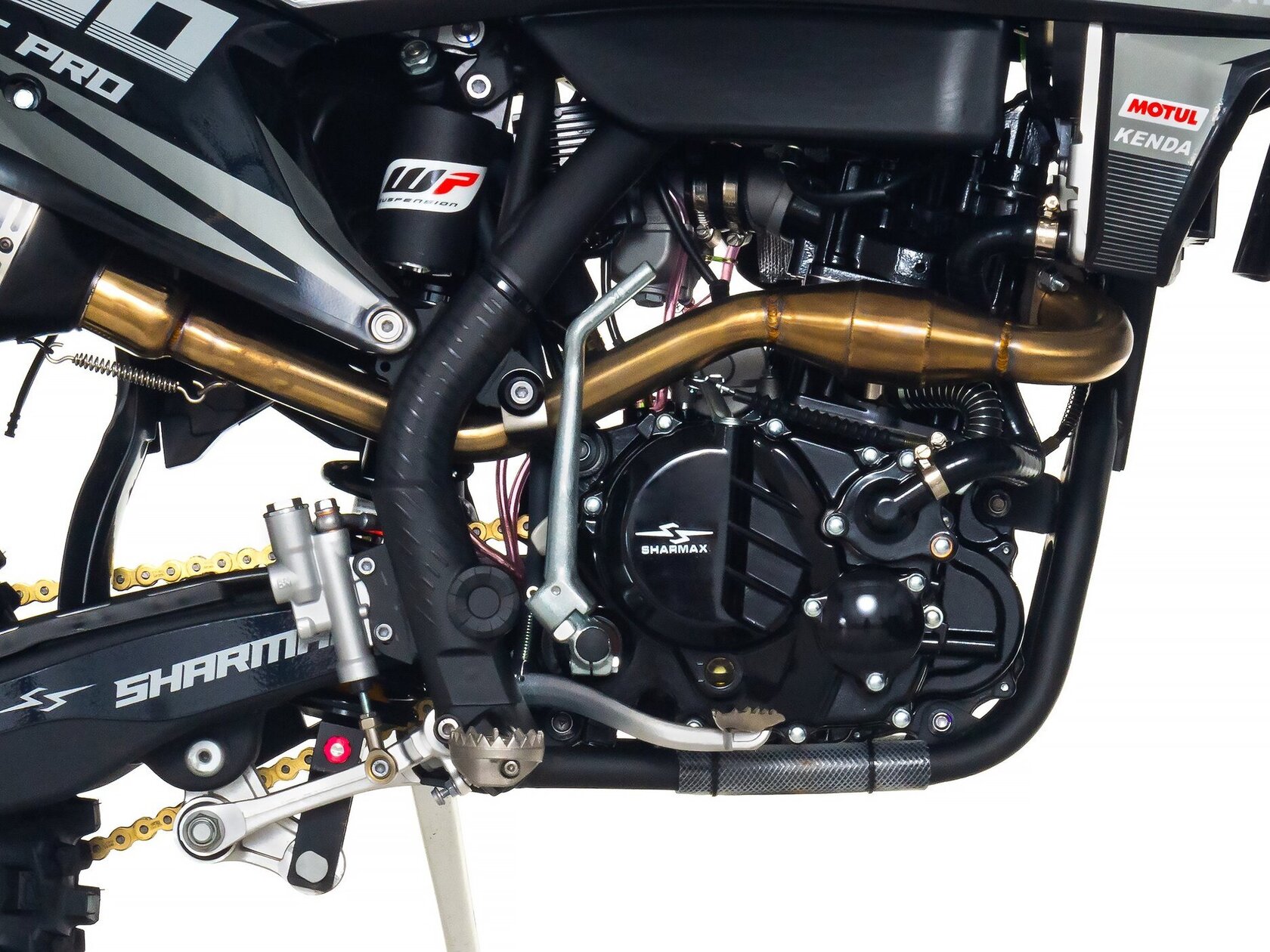Новый уровень качества в мире эндуро. Sharmax Expertpro 300 enduro — один из самых мощных байков от компании Sharmax Motors. Отзывчивый и надёжный, мотоцикл ExpertPro 300 подарит ощущение превосходства на любой трассе. Премиальное качество и проверенные технологии легли в основу этой новинки 2023 года. Мотоцикл Sharmax ExpertPro 300 был создан для тех, кто не боится добиваться новых вершин.Мотор 174 FMN5 от концерна Zongshen — 280 кубиков и 27 л. с. разгонят байк до максимума с самого старта. За цепь не переживайте, даже от такого резвого мотора 520 CHOHO GOLD не порвётся.5-ступенчатая коробка передач с шестернями из высокопрочного кованого металла почти не изнашивается с течением времени. Лапка переключения — алюминиевая и складная, не пострадает даже в случае жёсткого приземления.Nibbi PWK 32 — лучший в своём классе. Карбюратор от легендарного американского бренда, установленный на десятках лучших эндуро байков во всём мире. Топливная смесь высшего качества наполнит цилиндры за долю секунды и обеспечит быстрый старт даже в лютый холод.Подвеску Sharmax ExpertPro 300 можно настроить под любую поверхность без потери качества. Передняя вилка (с клапаном сброса воздуха) перевёрнутого типа имеет регулировки демпфирования, сжатия и отбоя, а задняя — ещё и с регулировкой преднатяга пружины. Надёжная подвеска поможет не вилять на поворотах и стабильно проходить все сложные участки трассы.Хотите быть на шаг впереди? С быстрым и надёжным электростартером вам нужно лишь нажать кнопку, чтобы продолжить гонку. Проверенный привод и мощный двигатель стартера дадут несколько драгоценных секунд преимущества и сэкономят время в самый важный момент.Sharmax Motors ExpertPro 300 оборудован жидкостным охлаждением с датчиками температуры, он включает дополнительные вентиляторы при достижении критических показателей. Помпа повышенной производительности не даст вам “закипеть” даже в +40C.Идеальная геометрия. Симметричная дуплексная рама из хроммомолибденовой стали, позаимствованная у профессиональных гоночных байков, обеспечит оптимальную жёсткость и отзывчивость. Благодаря такой форме райдер и байк становятся одним целым, с лёгкостью преодолевая любые препятствия трека.Статус премиального эндуро байка дополняет эргономичный конический руль. Материал — высокопрочный алюминий. Грипсы мягкие и не скользят, защита для рук выдержит сотни падений. Вам останется лишь уверенно схватиться за руль и полететь вперёд со скоростью ветра.