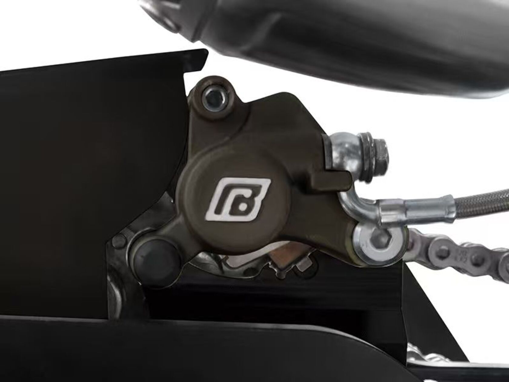 NIBBI Vanguard R-120 — это система переоборудования, которая позволяет превратить кроссовый мотоцикл в сноубайк для экстремальных зимних заездов. Комплект заменяет переднее колесо на лыжу, а заднее — на гусеницу, что открывает новые возможности для покорения снежных просторов.Ключевые преимущества и особенности:Вездеходная гусеничная система: Гусеница размером 3050 × 300 мм с грунтозацепами высотой 50 мм обеспечивает превосходное сцепление и проходимость. Комплект позволяет уверенно двигаться по снегу глубиной от 15 см и преодолевать даже глубокий рыхлый снег до 1,5–2 метров.Подвеска профессионального уровня: Стандартная подвеска R-120 оснащена премиальной технологией амортизации и полной регулировкой. Это позволяет настраивать демпфирование отбоя и сжатия в трех режимах для точного контроля в любых снежных условиях.Проверенный цепной привод: Привод инженерно разработан для максимальной надежности и использует цепь NIBBI 520 HLX2, что гарантирует стабильную передачу мощности как в глубоком снегу, так и на сложных трассах.Полная тормозная система Nibbi: Комплект оснащен собственной гоночной тормозной системой Nibbi, которая обеспечивает мощное и уверенное торможение в любых условиях.Прочная и легкая конструкция: Боковые панели из углеродного волокна снижают общий вес и повышают прочность. Все крепежные элементы заменены на высокопрочные болты с фиксатором резьбы, что исключает риск ослабления даже при экстремальных нагрузках.Технические характеристикиВ таблице ниже приведены основные технические параметры комплекта Vanguard R-120:Параметр ЗначениеРазмер гусеницы 3050 мм × 300 ммВысота грунтозацепов 50 ммШаг грунтозацепов 73 ммВес гусеничного модуля 57.45 кгТормозная система Дисковый тормоз Nibbi, однопоршневойДиаметр тормозного диска 150 ммПодвеска Два амортизатора Nibbi, с двойной регулировкой (отбой и сжатие)Задний ход подвески 85 ммПриводная цепь 520-74LЦепь в редукторе 520-52LМатериал боковых панелей Углеродное волокно (карбон)Рекомендуемый объем двигателя мотоцикла 300 куб. см и болееПрактическая информацияУстановка: Производитель позиционирует R-120 как комплект для самостоятельной установки, для чего предоставляются понятные пошаговые инструкции и видеоуроки. Однако для достижения оптимальной производительности рекомендуется обратиться к профессионалам.Обслуживание: Требуется регулярная чистка, проверка болтов и осмотр тормозов после нескольких поездок. Высокопрочная система креплений и герметичные компоненты подвески минимизируют общие затраты на обслуживание.