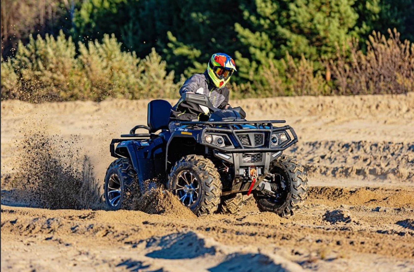 Квадроцикл HISUN TACTIC 750 LIMITED — многофункциональный вездеход с автомобильным рулевым управлением и посадкой. Разработан для эксплуатации в тяжелых условиях бездорожья. Укомплектован стальной сварной трубчатой рамой, пластиковыми обвесами с расширителями арок, передней лебедкой, двумя вместительными багажниками весом до 55 кг. Незаменим для походного туризма. Яркие LED – фары отлично освещают дорогу и гарантируют безопасность передвижения в темное время суток. Крупный протектор колес даст хорошее сцепление с грунтом. Продуманная эргономика обеспечивает высокий комфорт как для водителя, так и для пассажира, а вместительный бензобак на 17 литров и небольшой расход топлива позволит увеличить расстояния Ваших путешествий.