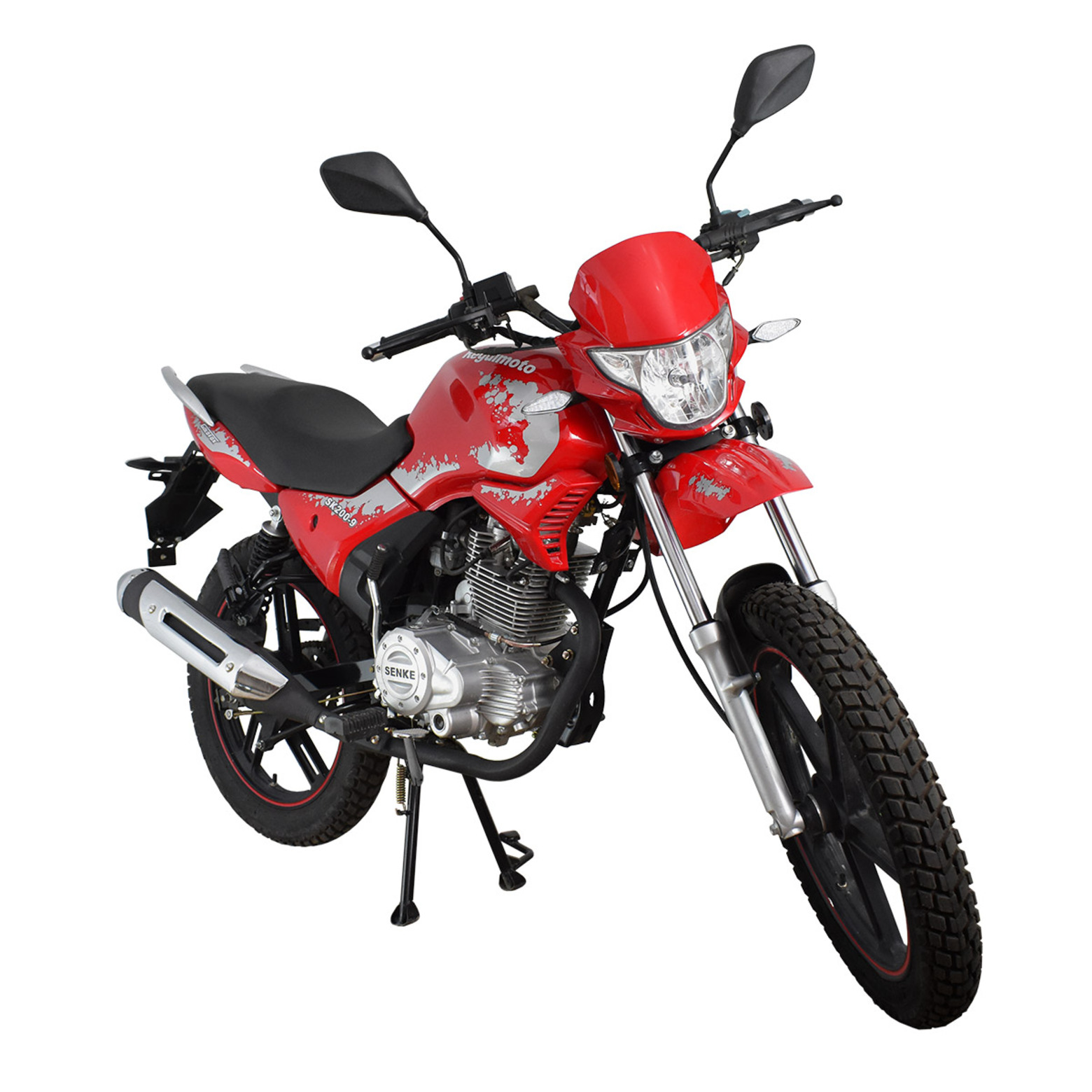 Компания «Regulmoto» представляет вниманию поклонников двухколесной мототехники мотоцикл Regulmoto SK200-9 – надежный и доступный для многих байк с широкими эксплуатационными возможностями. Мотоцикл Regulmoto SK200-9 – один из ярких представителей линейки малокубатурной мототехники известного азиатского производителя Senke. Мотоциклы производства одного из крупнейших китайских концернов пользуются заслуженным признанием экспертов и мотолюбителей в различных частях света, включая Европу и Америку. Продукцию Senke отличают не только одно из лучших на рынке соотношений достойного качества и демократичной цены, но и солидный эксплуатационный ресурс, высокая надежность, простое и недорогое сервисное обслуживание. В раме мотоцикла с 18-дюймовыми колесами на литых дисках установлен 4-тактный 200-«кубовый» двигатель с воздушным охлаждением, который способен развивать максимальную мощность в 13,6 лошадиных сил. Наличие у двигателя балансирного вала способствует снижению вибрации при работе мотора. 5-ступенчатая трансмиссия, электростартер, полноценная подвеска, представленная телескопической вилкой спереди и двумя амортизаторами и маятником сзади, цифровая приборная панель и емкий топливный бак – все это позволит получать максимум удовольствия от поездки. За безопасность использования мотоцикла Regulmoto SK200-9 отвечают надежная тормозная система (дисковый тормоз спереди и барабанный сзади), комплект светового оборудования и зеркал заднего вида. Regulmoto SK200-9 отличают современный внешний вид и обширные возможности практического использования: комплектация байка dual-sport резиной и увеличенный дорожный просвет позволяет эксплуатировать его как на асфальтированных дорогах, так и на проселках и тропах, включая легкое бездорожье.