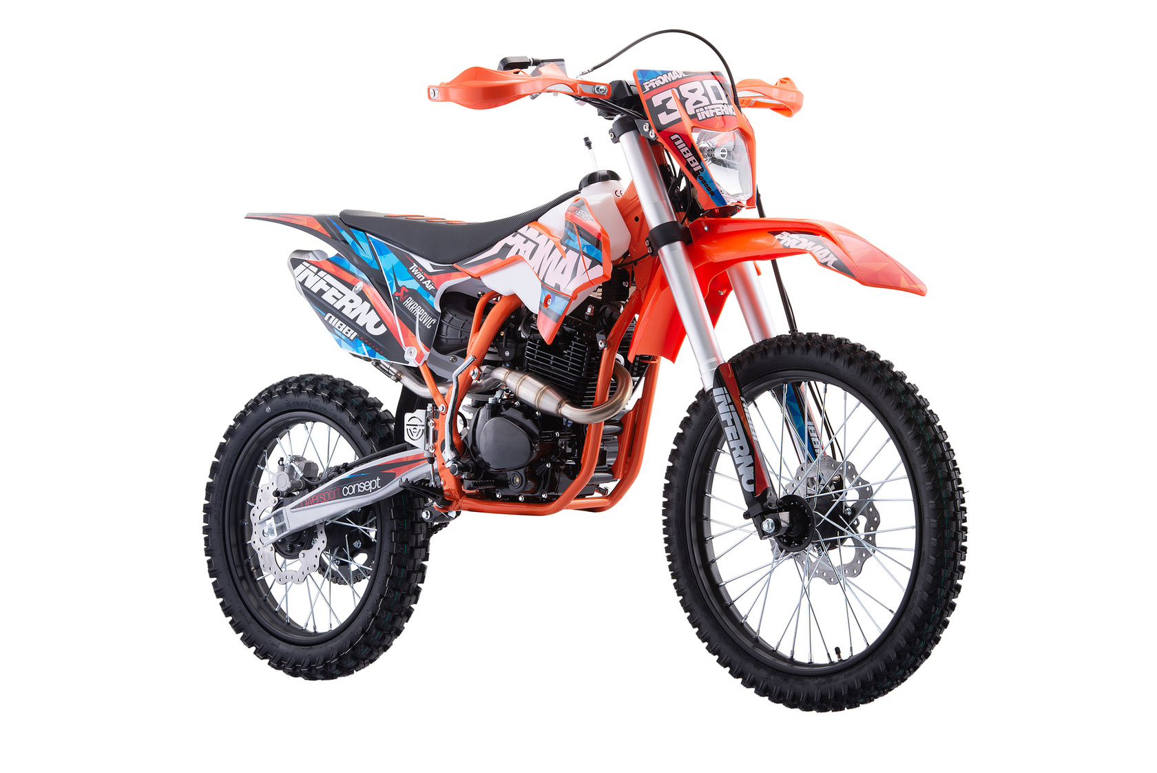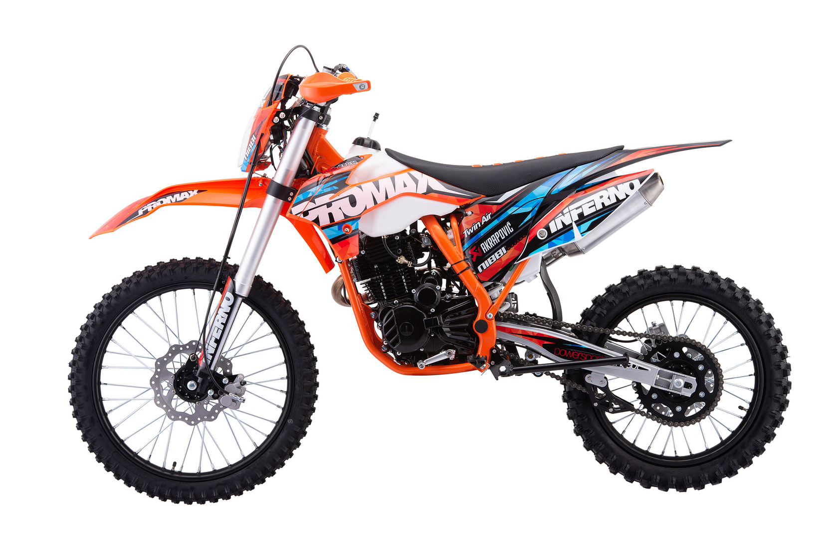 Главная ... Мотоциклы внедорожные Кроссовый мотоцикл PROMAX INFERNO 380 (4 valves, 6 gears) оранжево - черный-синий