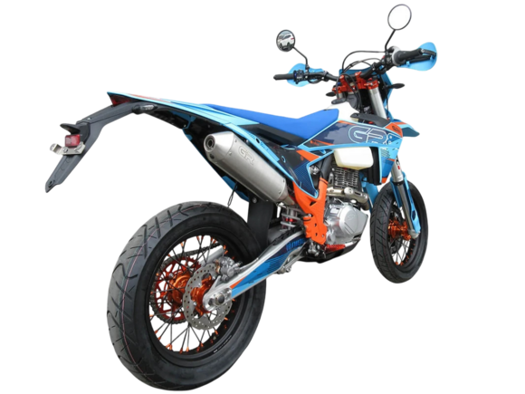 Мотоцикл-мотард GR8 F300A (4T CB300RL) Motard 2024 модельного года является городской версией модели GR8 F300A, адаптированной под езду по асфальту, имеющей шоссейную резину, полный набор светотехники и ПТС. Этот мотоцикл представляет собой оптимальный баланс производительности и технической оснащённости и создан для тех, кто не хочет расставаться с эндуро даже в городе. Идеальный снаряд как для гонок в классе супермото или стант-райдинга, так и для повседневной городской езды.Обновлённая модификация 2024 года вобрала весь опыт инженеров компании прошлых лет, а также самые последние наработки GR. Мотоцикл стал более производительным, комфортным и привлекательным.Одноцилиндровый 4-тактный двигатель воздушного охлаждения с 4 клапанами CB300RL ZS175FMN имеет объём 271 см³ и выдаёт 27 л.с., что позволяет развивать большую скорость и эффективно ускоряться после прохождения поворотов. Карбюратор NIBBI PWK32 обеспечивает бесперебойную работу техники в самых жёстких условиях эксплуатации, простоту и лёгкость в обслуживании, а также неприхотливость к качеству топлива.Трансмиссия представлена 6-ступенчатой механической коробкой передач с классической схемой 1-N-2-3-4-5-6.Модель 2024 года собрана на новой раме, а также обладает ярким пластиком с обновлённым дизайном.Передняя подвеска – телескопическая вилка перевёрнутого типа SZC Optima длиной 940 мм, регулирующаяся на сжатие и отбой. Перья вилки снабжены защитными кожухами. Сзади установлен моноамортизатор с прогрессией SZC Optima длиной 480 мм, также регулируемый на сжатие и отбой. Рычаг прогрессии даёт преимущество, эффективно “отрабатывая” небольшие неровности.Мотоцикл оснащён классическими спицованными колёсами диаметром 17 дюймов, обутыми в шоссейную резину. Эффективное и безопасное замедление с любых скоростей обеспечивают гидравлические дисковые тормоза – спереди установлен 2-поршневой суппорт SZC и тормозной диск диаметром 260 мм, а сзади – однопоршневой суппорт SZC с диском диаметром 220 мм. Диск переднего тормоза снабжён специальным защитным кожухом.Топливный бак вмещает 8 литров горючего.Мотоцикл укомплектован защитой кистей с пластиковыми “лопухами”, а также яркой фарой, которая позволяет кататься в тёмное время суток.Благодаря наличию ПТС и необходимого светового оборудования мотоцикл можно поставить на учёт, чтобы ездить по дорогам общего пользования.GR8 F300A (4T CB300RL) Motard сочетает отличные технические характеристики, комфорт и надёжность, что позволяет ощутить свободу на любой трассе.