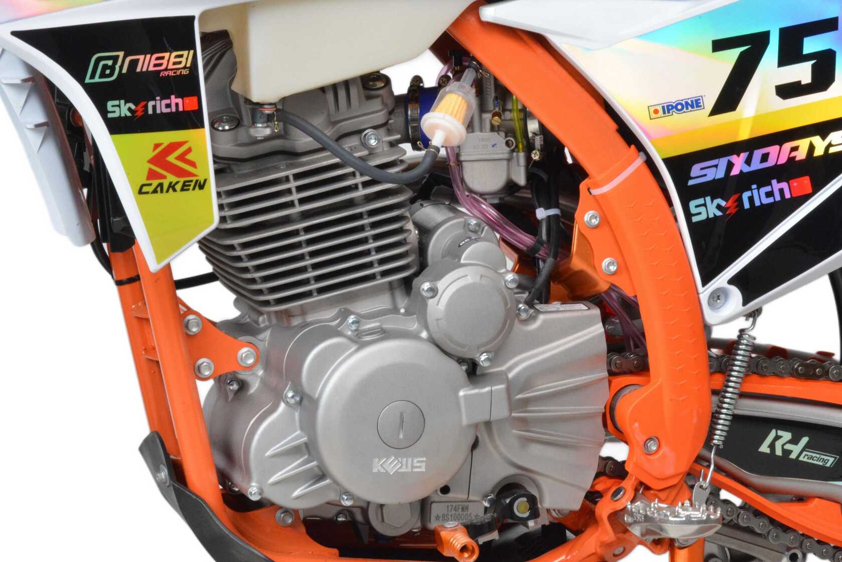 Kews K 24 PRO оснащен мощным мотором 176 MN объемом 300 куб. см с воздушным охлаждением. Это обеспечивает отличную производительность и надежность, а также позволяет мотоциклу уверенно справляться с разными типами трасс и сложными условиями.Мотоцикл оборудован 6-ступенчатой механической коробкой передач, что обеспечивает гибкость в выборе режима езды и позволяет оптимально использовать мощность двигателя в различных условиях.Kews K 24 PRO имеет карбюратор NIBBI PWK 32, который обеспечивает эффективное топливопитание и оптимальную работу двигателя даже в сложных условиях. Это способствует улучшению динамики разгона и общей надежности работы мотора.Мотоцикл оснащен усиленными спицами и алюминиевыми ободами от компании UNISON, что улучшает прочность колес и устойчивость к ударам при езде по сложным маршрутам. Подвеска Kews K 24 PRO имеет все возможные регулировки, что в свою очередь, позволяет настроить мотоцикл под разные задачи и условия езды , и чувствовать себя уверенно на различных трассах.