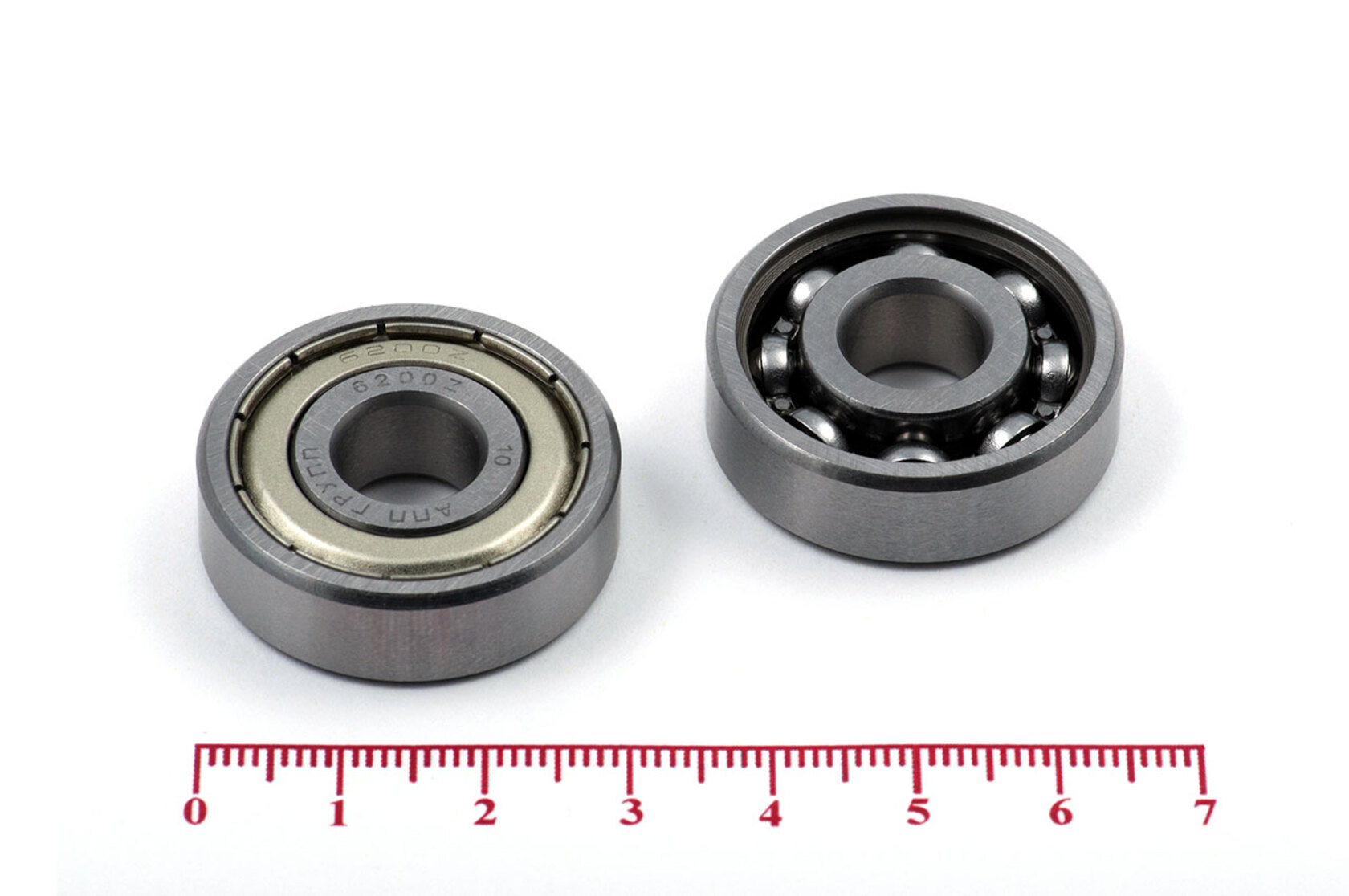 • Пара шариковых однорядных подшипников 6200z с посадочным диаметром 10 мм и наружным диаметром 30опедов и другой мототехники. Z — наличие защитной стальной шайбы с одной стороны подшипника для защиты внутренней части от грязи и влаги (цвет шайбы может отличаться в зависимости от партии).