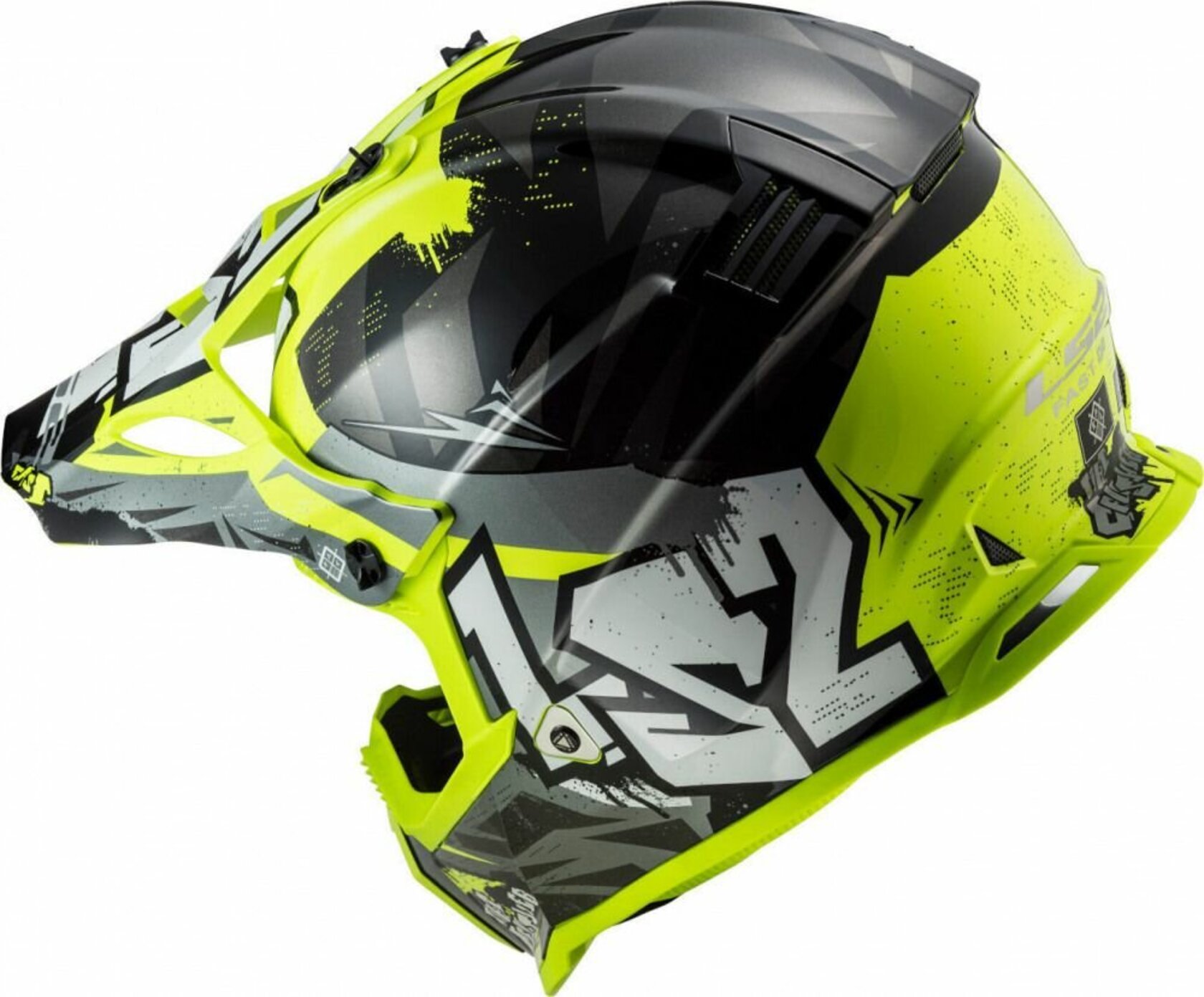 Шлем LS2 MX437 FAST EVO MINI CRUSHER Black Hi-Vis Yellow L
