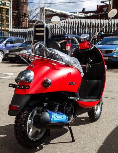 Скутер VENTO RETRO 49cc (150) сигнализация (99кг/100кг) (Красный Матовый) pitbikemarket.ru