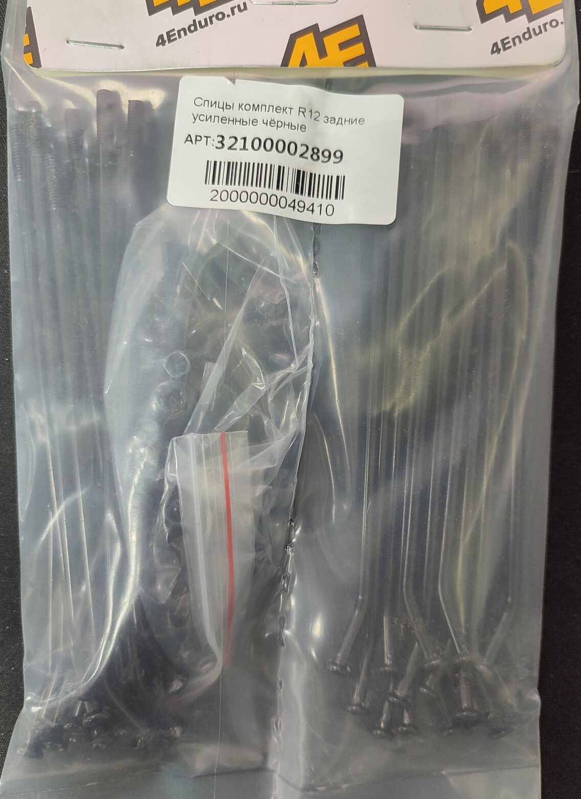 Комплект усиленных спиц для заднего колеса R12 на питбайк, изготовленный из прочной стали с надёжным антикоррозийным чёрным покрытием. Предназначены для использования в условиях повышенных нагрузок, а также при тюнинге и ремонте мототехники.