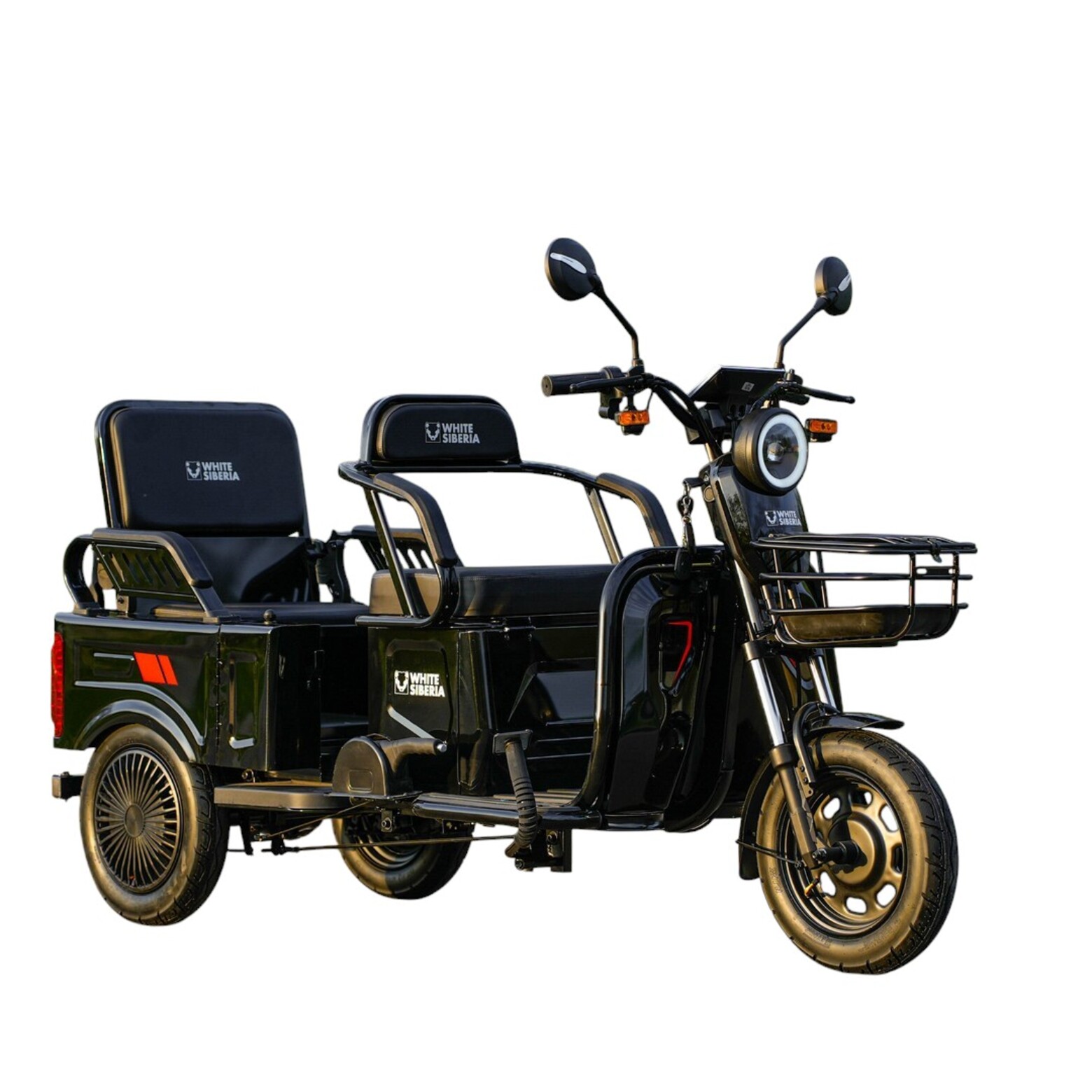 Пассажирский электрический трицикл-трансформер SIBTRIKE 2000WДанная модель рассчитана на взрослых райдеров, у которых есть дети. Поистине универсальный транспорт! Большое удобное сидение создано для продолжительных поездок. Есть откидное детское сидение и две корзинки - спереди и сзади. Аппарат подойдёт для поездок по территориям Российских санаториев, парков и набережных.Что же отличает SIBTRIKE 2000W от конкурентов?Универсальная конструкция для выполнения широкого спектра задач;Откидное детское сидение;Возможность ездить втроём – 2 взрослых места + детское сидение;Аккумулятор Li-ion 60V 21A с балансиром, запас хода до 45 км;Удобен для парков и коттеджных посёлков;Редукторный мотор с дифференциалом, что не даёт опрокидываться трициклу;Отличная тяга в гору;LED оптика;Колёса 10 дюймов.Электромотоцикл SIBTRIKE 2000W – отличный помощник для решения широкого спектра задач в санаториях, на территориях отелей, парков и набережных.Замена масла: 0,5 литра трансмиссионное GL-4 80W90Первая замена 350км, вторая 1000км, далее каждые 1500км