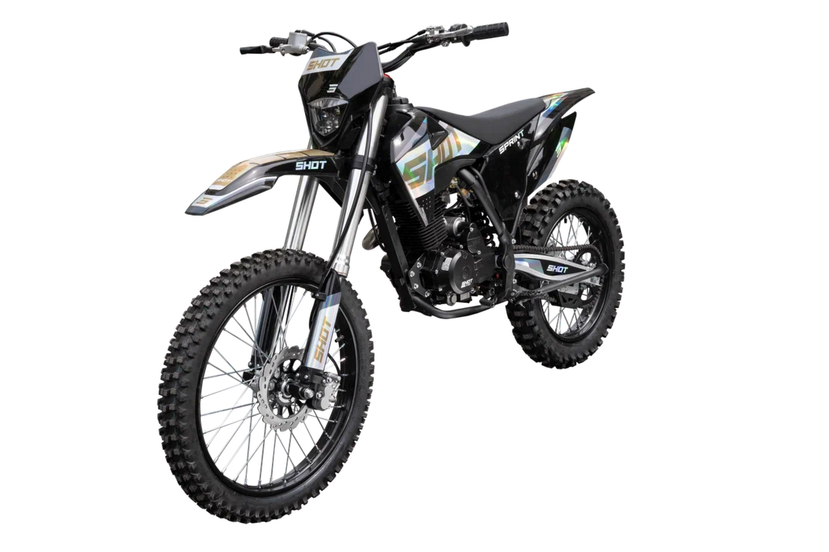 Эндуро мотоцикл SHOT SPRINT CB250 — лёгкий, надёжный и выносливый SHOT SPRINT CB250 — это универсальный эндуро мотоцикл, идеально подходящий как для начинающих, так и для опытных райдеров. Модель сочетает в себе манёвренность, достаточную мощность и качественную подвеску, что делает её отличным выбором для бездорожья, тренировок и активного отдыха. Основные характеристики: – Двигатель: Zongshen PR300 172FMM-5, объёмом 250 см³, оснащён баланс-валом для снижения вибраций и карбюратором Nibbi Racing PE30