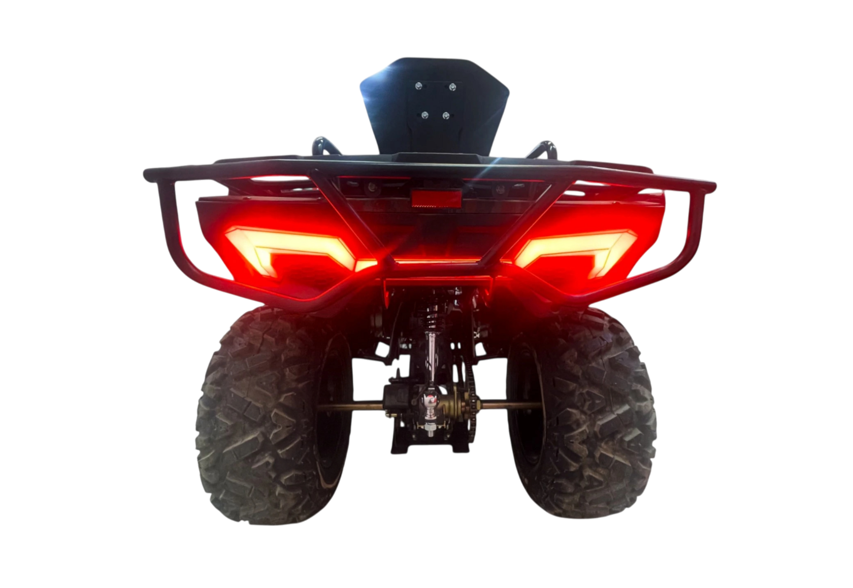 Машина также оснащена удобным сиденьем, что является несомненным плюсом во время длительных поездок. А наличие большого багажного отсека позволяет перевозить с собой все необходимое для отдыха на природе, рыбалки и личных нужд. Мощные передние и задние фары квадроцикла создают отличную видимость даже в темное время суток.