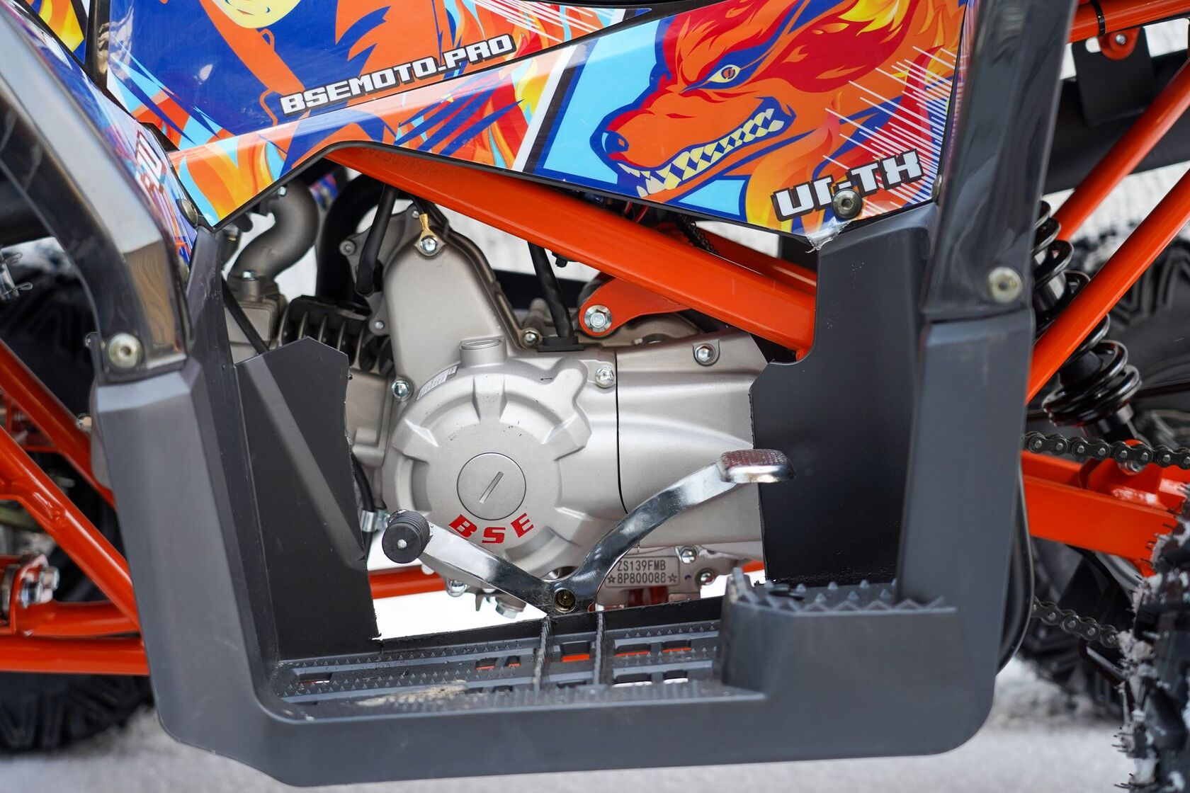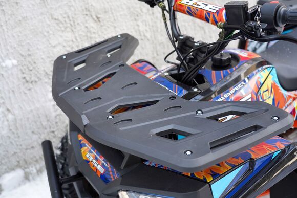 Встречайте детский квадроцикл BSE XT-1U в ярком утилитарном дизайне.XT-1U оснащен тяговитым и надежным 125 кубовым двигателем Zongshen ZS154 FMI. Наша гордость — энергоемкая подвеска с большими ходами, выдерживающая высокие нагрузки.Спереди у квадроцикла установлен внушительный защитный металлический бампер. Также у XT-1U имеется высокий клиренс, широкие арки для защиты от грязи, защита рук, защита днища, защита задней звезды, ловушки для ног.Из удобств и комфорта у квадроцикла имеется: яркая LED оптика спереди, задний стоп-сигнал, мощные гидравлические дисковые тормоза, удобное сиденье, регулируемый ход курка газа (родительский контроль), аварийный выключатель-чека двигателя, защитная подушка на перекладине руля.Квадроцикл имеет усиленную стальную раму, максимально жесткую, и два багажника с грузоподъемностью в 20 кг. Допустимая нагрузка составляет до 110 кг.Теперь можно круглогодично наслаждаться драйвом от управления легкого квадроцикла и преодоления новых трасс и направлений, включая достаточно серьезное внедорожье.