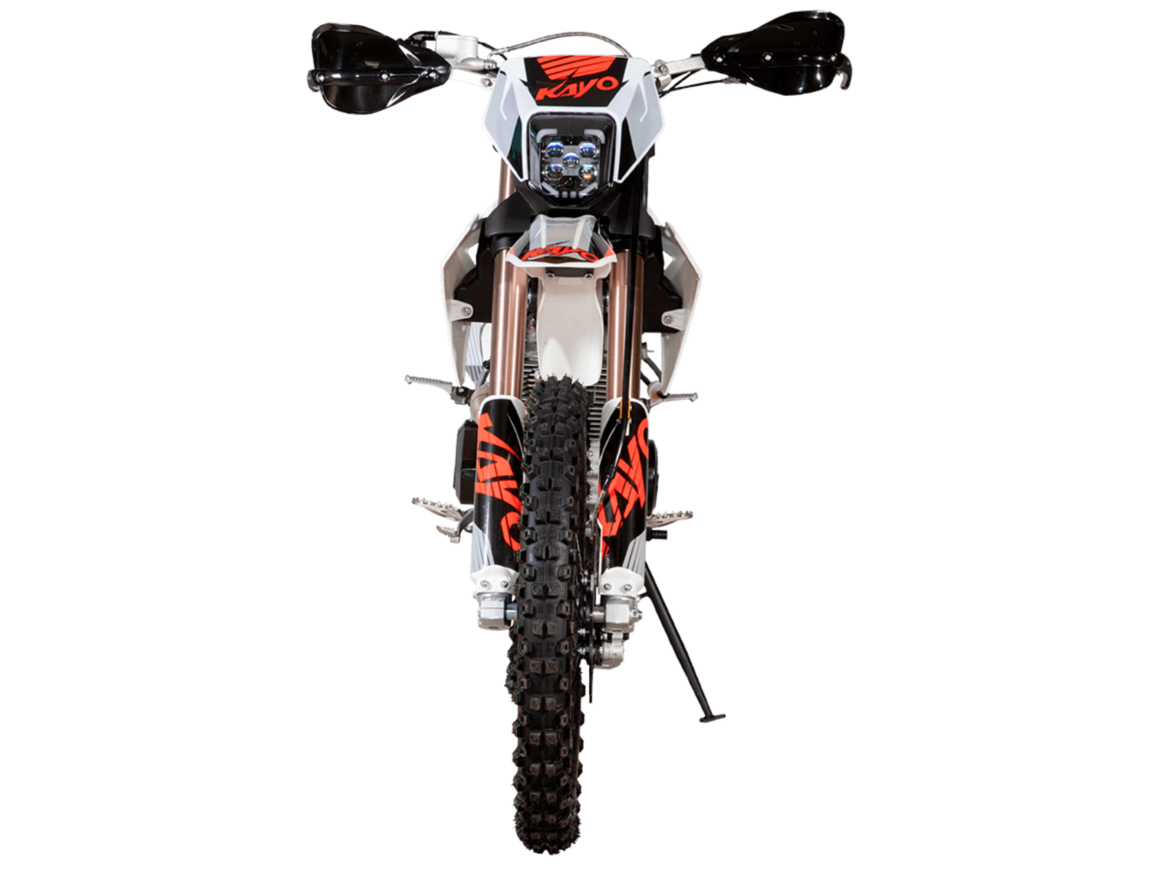 Мотоцикл KAYO K3 300 MX 21/18 2025 – эндуро мотоцикл, который пришёл, чтобы стать новым хитом среди среднеразмерных моделей!Мотоцикл оснащён одноцилиндровым 4-тактным двигателем ZONGSHEN PR300/ZS175FMM-5 объёмом 271,3 см³ с балансирным валом и воздушным типом охлаждения. Максимальная мощность в 21,75 л.с. достигается при 8500 об/мин, а максимальный крутящий момент 22 Нм при 6500 об/мин. Соотношение диаметра и хода поршня 75,0х61,4. Степень сжатия 9,29:1. Карбюратор NIBBI PE30 обеспечивает топливную экономность и бесперебойную работу в самых сложных заездах. На мотоцикле установлена 5-ступенчатая коробка передач и цепной привод. Запуск двигателя осуществляется с помочью электростартера или кикстартера. Объём топливного бака 10 литров.Спицованные колёса с алюминиевыми ободами имеют диаметр 21 дюйм спереди и 18 сзади. Для подвески спереди используется телескопическая вилка перевёрнутого типа длиной 830 мм, а сзади установлен моноамортизатор длиной 450 мм. Оба компонента регулируются. На мотоцикле установлены гидравлические дисковые тормоза с 2-поршневой системой спереди и однопоршневой сзади.Мотоцикл готов к самым суровым вызовам бездорожья. Удобное расположение фильтр-бокса позволяет легко обслуживать его после заездов. Руль оснащён алюминиевой защитой рук с высокими пластиковыми накладками. На мотоцикле используются ручки-«неломайки» с регулировкой положения рычага и короткоходная ручка газа.Габариты 2100х810х1180 мм, вес 109 кг. Клиренс 340 мм, колёсная база 1390 мм, высота по седлу 900 мм.