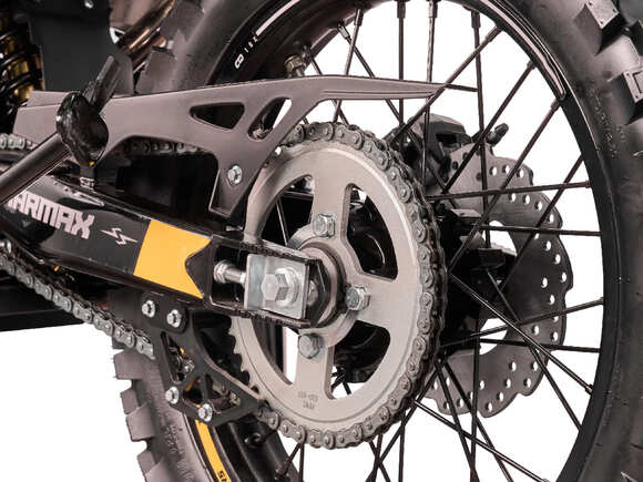 Sharmax Sport 300 Air Black Edition — лимитированная линейка эндуро байков Sharmax, созданная для ценителей сдержанного и стильного дизайна. Отзывчивый и быстрый, мотоцикл Sport 300 Air подарит ощущение превосходства на любой трассе. Премиальное качество и проверенные технологии легли в основу этой новинки 2024 года. Надёжная подвеска, новый двигатель с балансировочным валом усовершенствованная тормозная система — всё это поможет вам выйти на новый уровень в мире эндуро.Идеально сбалансированный мотор 175 FMM-6 от концерна Zongshen, будто был создан для этого байка. 300 куб. см и 25 л.с. — более чем достаточно для быстрого старта. Этот силовой аппарат сделан, чтобы показать оптимальное сочетание полезной мощности и низкого веса.Надёжный карбюратор Nibbi PE 28 — один из лучших в своём классе. Карбюратор от легендарного американского бренда, установленный на десятках эндуро байков во всём мире. Топливная смесь высшего качества наполнит цилиндры за долю секунды и обеспечит быстрый старт даже в лютый холод.6-ступенчатая коробка передач с шестернями из прочного кованного металла практически не изнашивается с течением времени. Лапка переключения — алюминиевая и складная, не пострадает даже в случае жёсткого приземления. Не рекомендуем проверять её на прочность, просто поверьте нам на слово.В конструкции задней подвески расположена прогрессия, позволяющая с комфортом передвигаться по мелкой щебёнке и преодолевать прыжки без ущерба для амортизатора. Байк легко настроить под свой вес и стиль езды, подобрав идеальный баланс жёсткости.Sharmax Sport 300 Air оборудован системой воздушного охлаждения. Нет громоздкого радиатора, вес байка стал меньше, управляемость — лучше. Просто нажмите на газ — и вперёд! За температуру не переживайте — не перегреетесь. Симметричная дуплексная рама, позаимствованная у профессиональных гоночных байков, обеспечит оптимальную жёсткость и отзывчивость. Отдельно проваренные швы дают дополнительную прочность конструкции мотоцикла. Благодаря такой форме райдер и байк становятся одним целым, с лёгкостью преодолевая любые препятствия трека.Двигатель питает мощный литий-ионный аккумулятор ёмкостью 6,5 А/ч. Не подведёт и не разрядится в самый важный момент, обеспечит быстрый старт мотора. Все провода для удобства спрятаны под сиденье, так что за цепляться ветки и вылетать на ходу точно не будут.Шины Cordial буквально вгрызаются в грунт, на оставляя шансов соперникам на виражах. Агрессивный рисунок шашки и мощный грунтозацеп обеспечивают идеальный баланс жёсткости и управляемости.