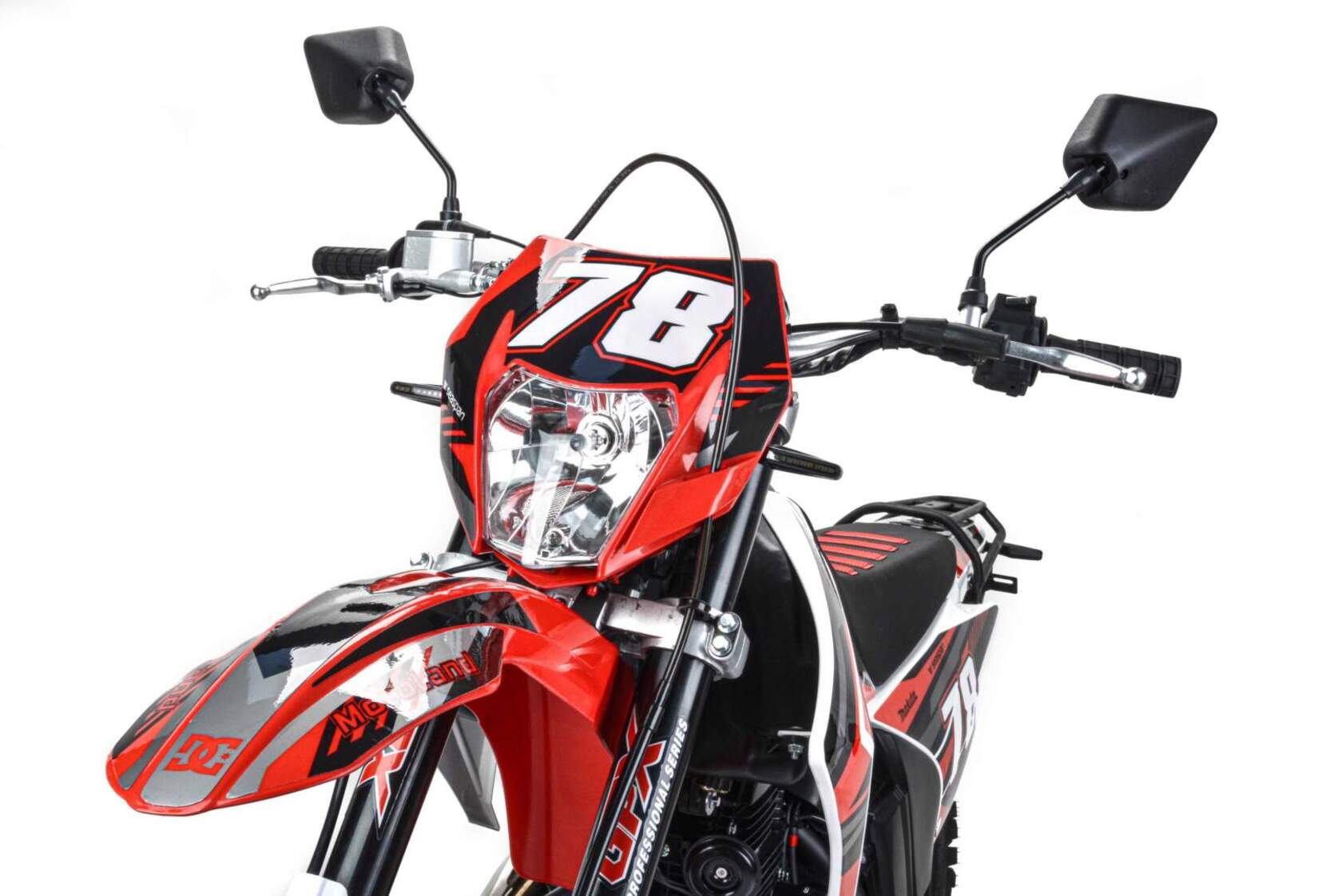 Motoland XR 300 Lite (175FMM) с ПТС – бюджетный короткобазный кроссовый мотоцикл с уменьшенной высотой по седлу и мощным двигателем 175FMM на воздушном охлаждении 300 cc мощностью 25 лс.Ключевыми особенностями мотоцикла являются его компактные габариты, стальная рама, современная подвеска с предустановленными настройками с завода, мощные тормоза, стальные колесные диски, наличие электростартера и кик стартера, прямоточный выхлоп, обвес из АБС пластика, LED оптика с возможностью переключения ближний \дальний, заниженное комфортное сидение.- ПТС версия с зеркалами и повортниками.- Двигатель ZS 175FMM – 300 кубовый «тяговитый» двигатель с высокими показателями крутящего момента и мощностью 25 лс, на воздушном охлаждении.-карбюратор PZ 30 обеспечивает бесперебойную работу двигателя в любом диапазоне температуры и высоты.- Стальная рама обеспечивает солидный запас прочности, ресурс и ремонтопригодность- Энергоемкая подвеска с заводскими настройками гарантирует уверенное преодоление неровностей