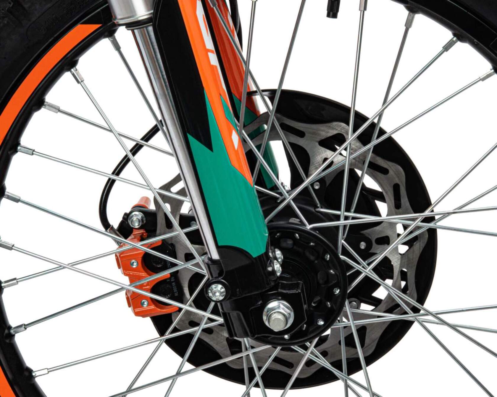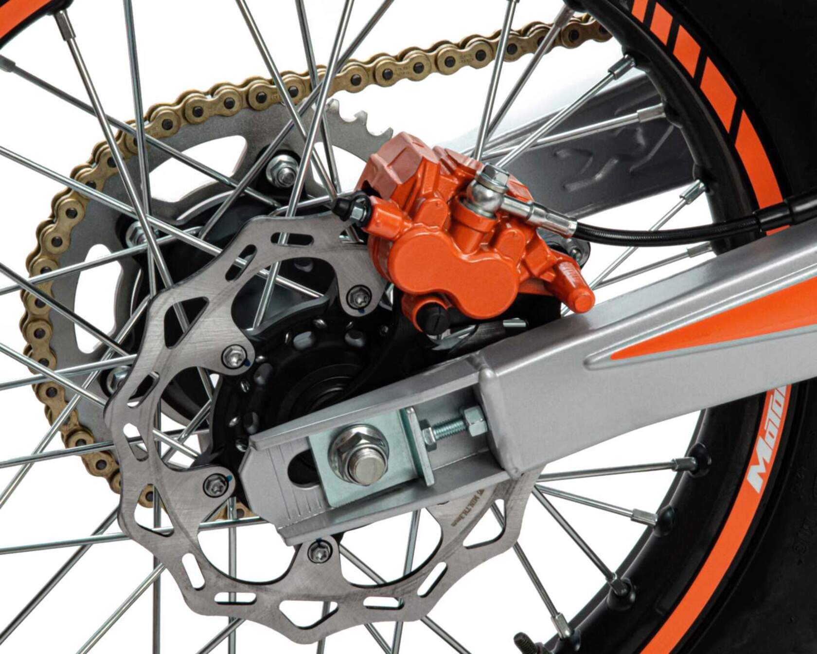 Мотоцикл Кросс SMX300 с ПТС это отличный кроссовый мотоцикл. Имеет хорошую проходимость и тяговую мощность за счет установленного двигателя ZONGSHEN 175FMM мощностью 25 л.с. и карбюратора NIBBi 32. Идеален для бездорожья, т.к. его кроссовые шины (120-90) и (80-100) просто созданы для езды по мягкому и среднему грунту. Телескопическая вилка с регулировками перевернутого типа позволяет легко преодолевать ямы, ухабы и другие неровности. Задняя подвеска маятниковая, с моноамортизатором. Его дизайн подчёркивает неуступчивый спортивный характер байка.Мотоцикл Кросс SMX300, выдерживает нагрузку до 150 кг. Прочный облицовочный пластик типа КТМ 2024 года. Надёжно закрепленный руль имеет переменное сечение: 28 мм в месте крепления и 22 мм на концах под грипсами, а также короткоходную ручку газа. На мотоцикле установлена защита рук и подножки для пассажира. Колёса алюминиевые, оснащены усиленными спицами и антибуксаторами, размер переднего — 21 дюйм (80-100), заднего — 18 дюймов (120-90), тормозная система – с одно и двухпоршневыми тормозными суппортами соответственно.Для запуска двигателя можно использовать электростартер или кикстартер. Система зажигания электронная (CDI). Механическая трансмиссия содержит 5 передач. У мотокросса отличный запас хода: - 9 л, расход топлива - 5 л на 100 км. Передняя LED фара обновленного дизайна легко включается поворотом замка зажигания и позволяет ездить в сумерках и темноте, а также стоит эргономичная и многофункциональная приборная панель.