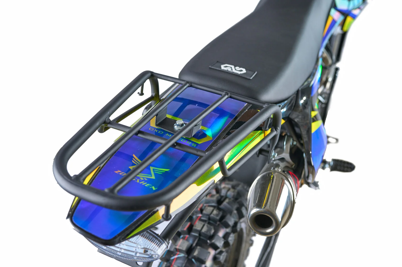 ДвигательДвигатель ZS165FMM - 4-тактный двигатель воздушного охлаждения объёмом 223 куб см с двумя клапанами, оснащён балансировочным валом, благодаря которому уменьшается избыточная вибрация, передаваемая от двигателя на раму и общую конструкцию техники. Характеризуется хорошей тягой с самых низов и лёгким пуском с помощью электростартера. Двигатель отлично зарекомендовал себя в качестве надёжного, универсального, неприхотливого мотора с хорошими характеристиками.РамаРама мотоцикла OXO производится из труб шестигранного сечения хром-молибденовой стали, которая является очень прочной и легкой. Геометрия рамы, благодаря правильно выверенному центру тяжести и углу наклона вилки - способствует наилучшей управляемости устойчивости мотоцикла на низкой скорости.ПодвескаПередняя вилка перевернутого типа. Мотоцикл LITE 250 снабжен моноамортизатором, который соединен посредством системы рычагов прогрессии. Система прогрессии, обеспечивает равномерную, мягкую работу и увеличивает длину рабочего хода подвески.КолесаРазмер передней покрышки: 80/100-21. Размер задней покрышки: 120/100-18. Они прекрасно себя ведут по песку и грязи, что позволяет райдеру отлично показать себя на пересеченной местностиТормозная системаТормозная система мотоцикла - полностью гидравлическая с армированными шлангами. Спереди и сзади установлен двухпоршневой суппорт. Данная конфигурация тормозных механизмов, позволит быстро и безопасно остановиться с максимальной скорости даже на бездорожье.РульВажная часть современного эндуро мотоцикла - усиленный руль переменного сечения Мотоцикл укомплектован панелью приборов.