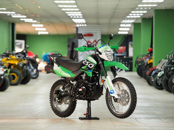 Мотоцикл Racer RC250GY-C2 оснащен мощным четырехтактным двигателем объёмом 224 куб. см. Максимальная мощность составляет 15 л.с., а максимальная скорость при этом около 120 км/ч. Этот мотоцикл идеальный вариант для эксплуатации в условиях проселочных дорог, лесов и полей. В отличие от Panter Lite, дисковые тормоза установлены спереди и сзади.Запуск двигателя может осуществляться как с помощью электростартера, так и с помощью кик-стартера. Охлаждение двигателя – воздушное, расход составляет всего 3 л/100 км. Коробка передач имеет пять скоростей вперед. Объем бака 10 л, этого хватит что бы преодолеть большое расстояние.