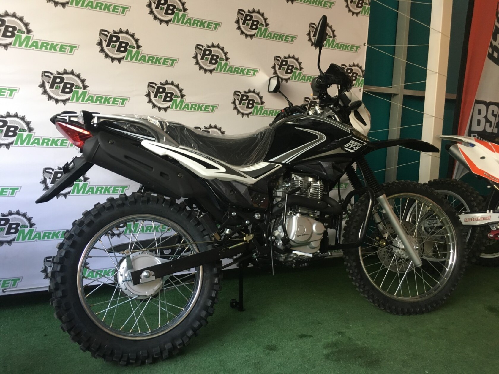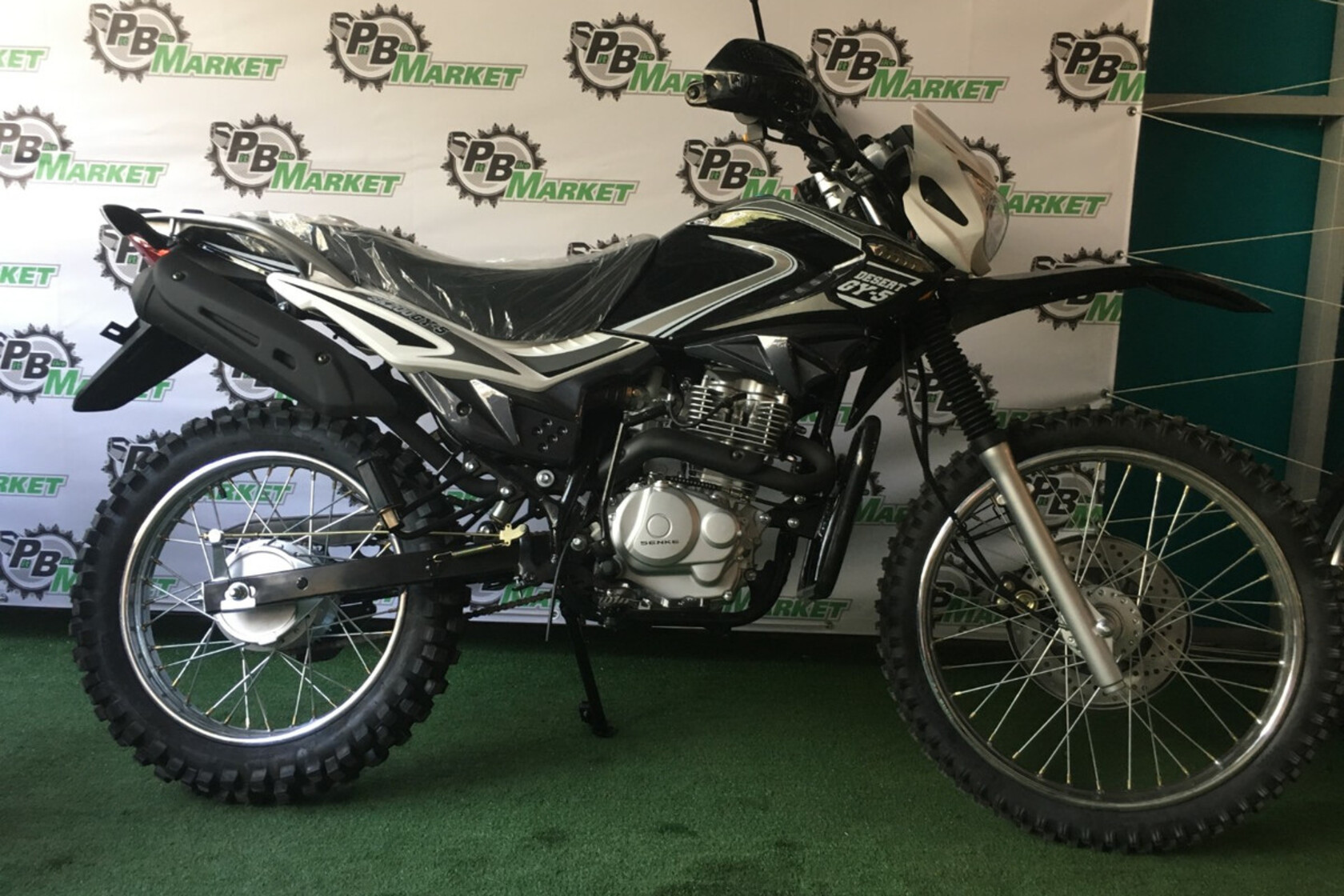 Regulmoto SK 200GY-5 – мотоцикл двойного назначения, созданный для эксплуатации как на дорогах общего пользования, так и на легком бездорожье. Топовая модель линейки лайт-эндуро мототехники известного китайского производителя Senke отличается высокой надежностью повседневной эксплуатации, отсутствием сложностей в сервисном обслуживании, простотой и легкостью управления.В надежной раме с защитными дугами Regulmoto SK 200GY-5 установлен 4-тактный одноцилиндровый двигатель с рабочим объемов в 20 см3, демонстрирующий максимальную мощность в 13.6 л.с. Мотор с воздушным охлаждением, в котором можно без труда признать реплику двигателя известного японского производителя, оснащается балансировочным валом, что позволяет избавиться от излишней вибрации.Подвеска мотоцикла на колесах 21/18 дюймов со стальными ободьями представлена телескопической вилкой-перевертышем спереди, перья которой закрыты защитой, и стальным маятником с моноамортизатором сзади. Тормоза у мотоцикла дисковые, спереди установлен 4-поршневой суппорт, сзади – 2-поршневой.Оснащение Regulmoto SK 200GY-5 соответствует возлагаемым на мотоцикл эксплуатационным задачам: на байке вполне комфортно передвигаться по дорогам и легкому бездорожью, чему способствуют достаточно большой ход амортизаторов, защита цепи, пластиковая защита рук. Среди установленного оборудования присутствуют: аналоговая приборная панель, замок зажигания с защитой от попадания песка и пыли, полный комплект светового оборудования с дополнительными светодиодными поворотниками, встроенными в боковые обтекатели, зеркала заднего вида, стояночная и центральная подножки.Данная модель мотоцикла присутствует на отечественном рынке мототехники уже достаточно длительное время, за которое мотоцикл зарекомендовал себя легким в эксплуатации и неприхотливым в обслуживании аппаратом. О высокой надежности мотоцикла говорят солидный километраж пробегов при отсутствии серьезных неисправностей и позитивные отзывы обладателей Regulmoto SK 200GY-5.У нас Вы можете купить этот мотоцикл с бесплатной доставкой по РФ и гарантией до года. Также его можно приобрести в рассрочку или в кредит.