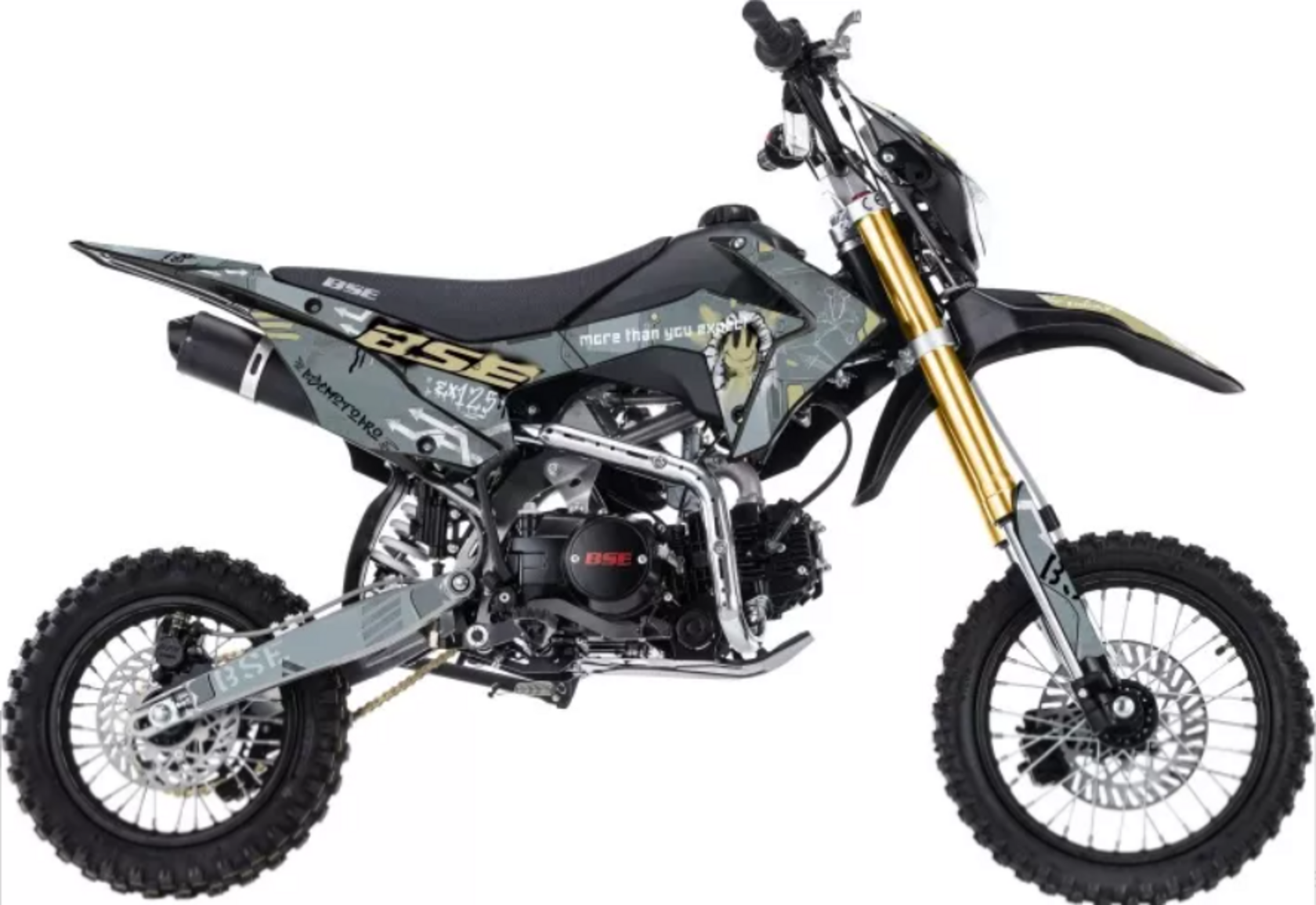 BSE EX 125e – это питбайк, созданный компанией BSE, предоставляющий отличные характеристики для любителей активного мотоциклетного опыта. С массой всего 75 кг и мощностью двигателя 10 л. с., этот бензиновый 1-цилиндровый 4-х тактный мотоцикл с легкостью подчеркивает свою маневренность и эффективность. Модель оснащена двигателем Zonsgshen ZS154FMI-2 объемом 125 см3, работающим по принципу 4-х тактного цикла, что обеспечивает плавное и экономичное движение. Система охлаждения воздушная, что способствует эффективному теплообмену в самых разнообразных условиях эксплуатации. BSE EX 125e обладает уникальной комбинацией передних и задних шин – 17" и 14" соответственно, что обеспечивает отличное сцепление с дорогой и устойчивость на разнообразных поверхностях. Система запуска включает кикстартер и электростартер, обеспечивая удобство использования в различных ситуациях. Телескопическая передняя подвеска и задний моноамортизатор гарантируют плавное и комфортное вождение на неровных дорогах. Дисковые тормоза спереди и сзади обеспечивают высокую степень безопасности и эффективный контроль при торможении. С трансмиссией типа механическая и системой подачи топлива через карбюратор, питбайк BSE EX 125e предоставляет надежность и простоту в управлении. Рама из стали обеспечивает прочность и долгий срок службы мотоцикла. Фары наличие питбайка делают его подходящим для использования в различных условиях освещения. Объем топливного бака составляет 3.5 литра, что позволяет ему преодолевать длинные расстояния на одном баке. Размеры в упаковке (142 х 43 х 64 см) и высота седла (860 мм) делают его компактным и удобным для хранения. Марка топлива – АИ-92, что является распространенным и доступным вариантом.