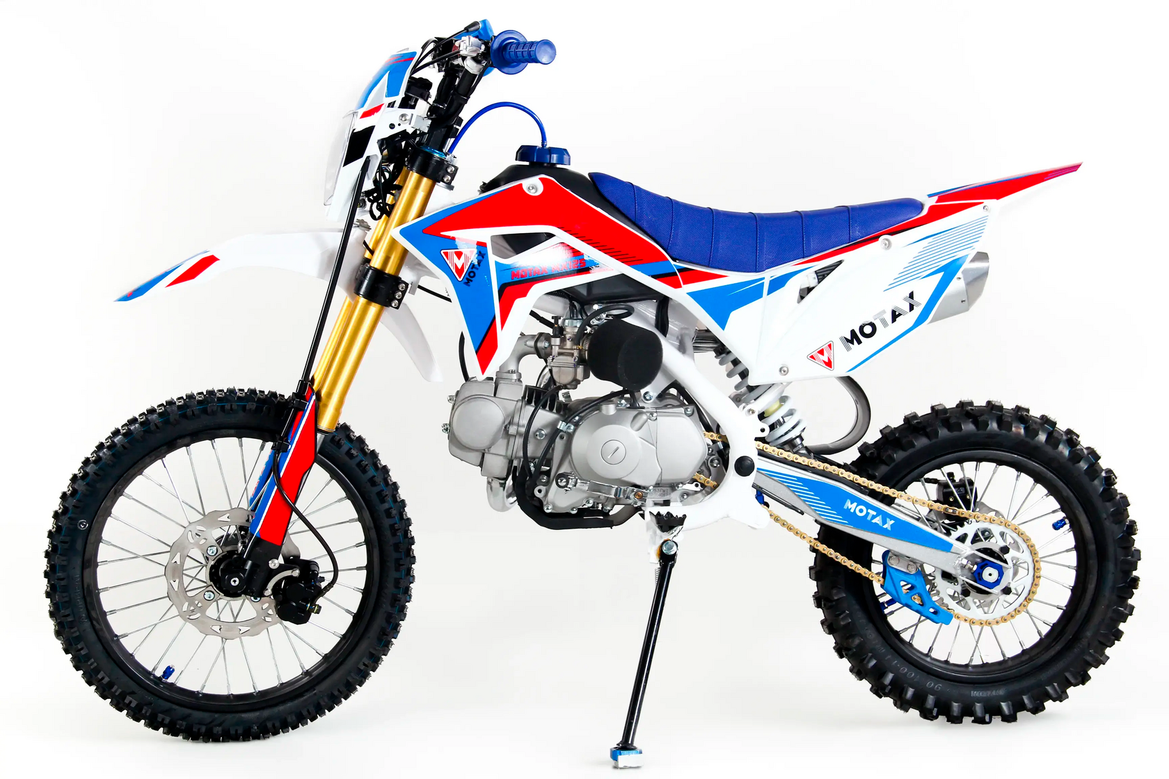 Питбайк MOTAX MX 125cc оснащен четырехтактным бензиновым двигателем 1P53FMI с верхним распределительным валом и воздушным охлаждением, имеющим два клапана на цилиндр, что обеспечивает стабильную работу и длительный срок службыЗапуск двигателя возможен с помощью электрического стартера и ножного стартера. Максимальная мощность двигателя составляет 8,5 лошадиных сил, что позволяет развивать скорость до 85 км/ч. Четырехступенчатая трансмиссия (N-1-2-3-4) позволяет гибко управлять скоростью и мощностью, что удобно для разных условий езды. Гидравлические дисковые тормоза установлены как на переднем, так и на заднем колесах. Подвеска нерегулируемая 45-48/735 (33). Покрышки передние 70/100-17 и задние 90/100-14. Объем топливного бака – 4 литра. Объем масла в двигателе – 0,8 литра.