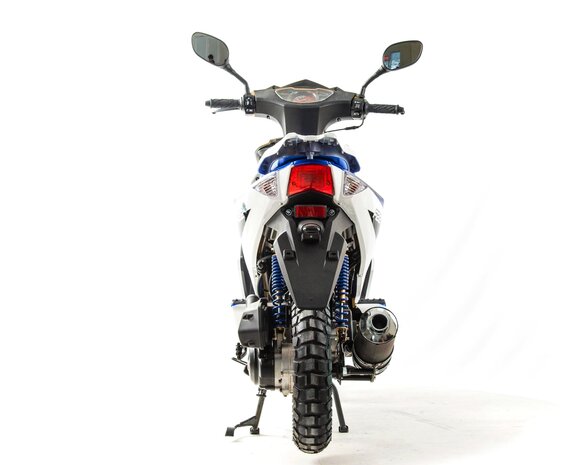 Мощный скутер Motoland F22 50 — это отличный вариант для загородного катания и поездок на рыбалку. На модели установлен одноцилиндровый четырехтактный двигатель мощностью 4 л/с и рабочим объемом 50 см3. Передний тормоз — дисковый, задний — барабанный. Колесные диски выполнены из алюминия методом литья. Выдерживает нагрузку до 150 кг, что позволяет перевозить одного пассажира. Под сиденьем есть багажное отделение. Приборная панель — электромеханическая.У нас Вы можете купить этот скутер с бесплатной доставкой по РФ и гарантией до года. Также его можно приобрести в рассрочку или в кредит.