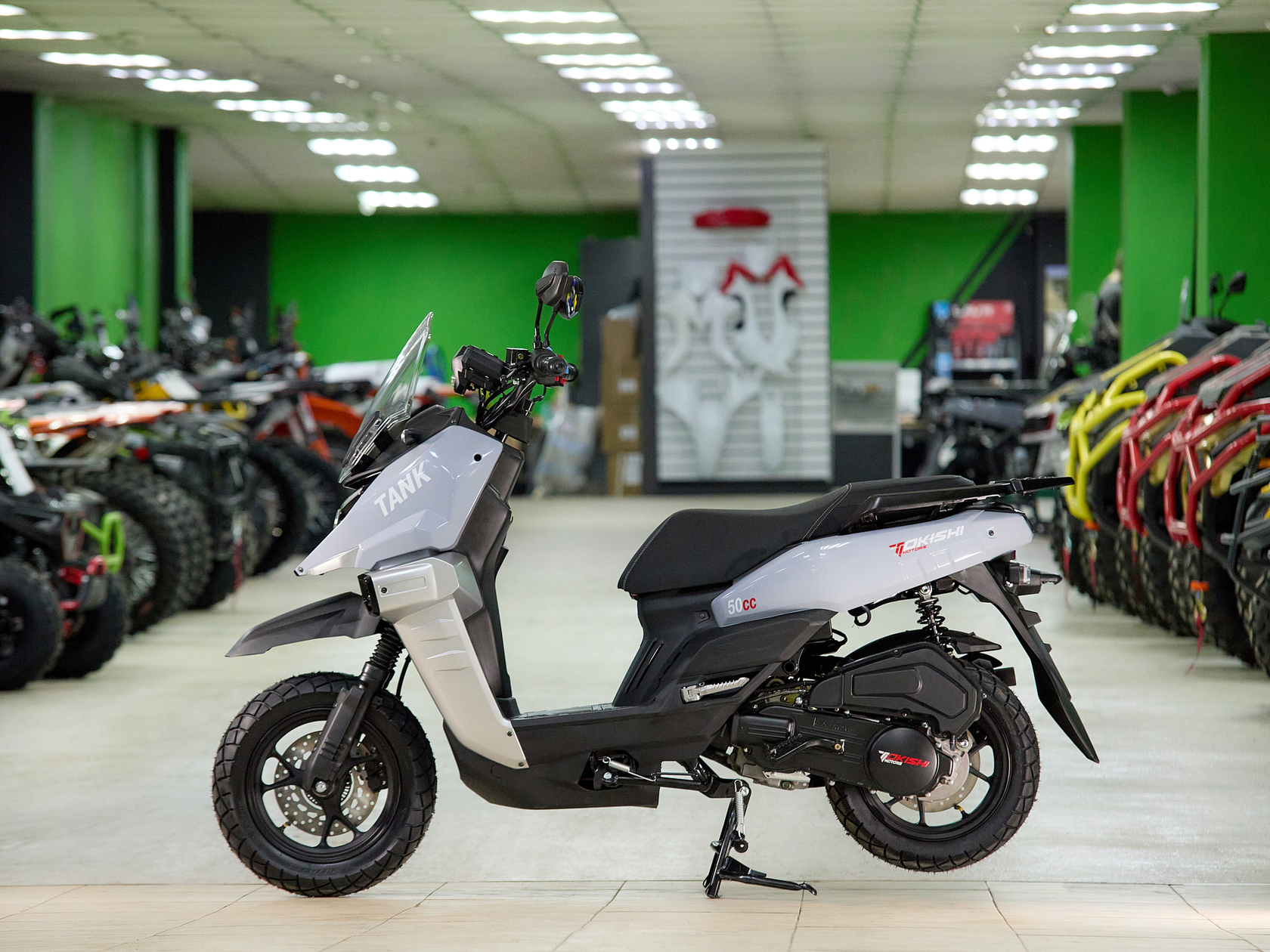 Познакомьтесь с эволюцией легенды! Третье поколение культового турэндуро скутера сочетает в себе все лучшие черты предшественников — мощный 170-кубовый двигатель, не требующий прав категории «А», и готовность к любым дорогам — с совершенно новым агрессивным дизайном. X-образная фара, белоснежный окрас и фирменный стиль Tokishi выделят вас из толпы и в городе, и на бездорожье.